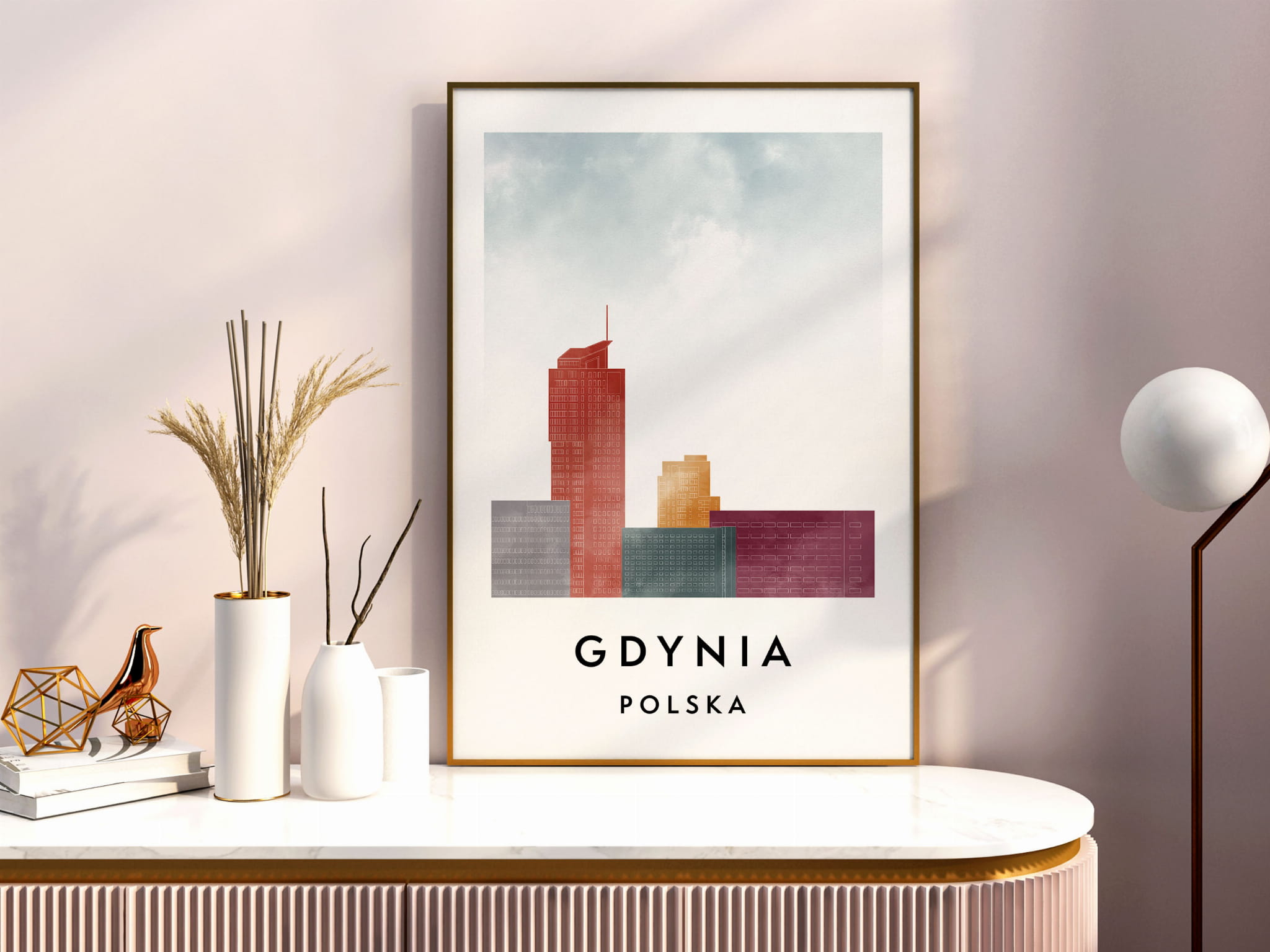 Plakat do salonu skylines Gdynia stylu Watercolor/ Akwarelowym