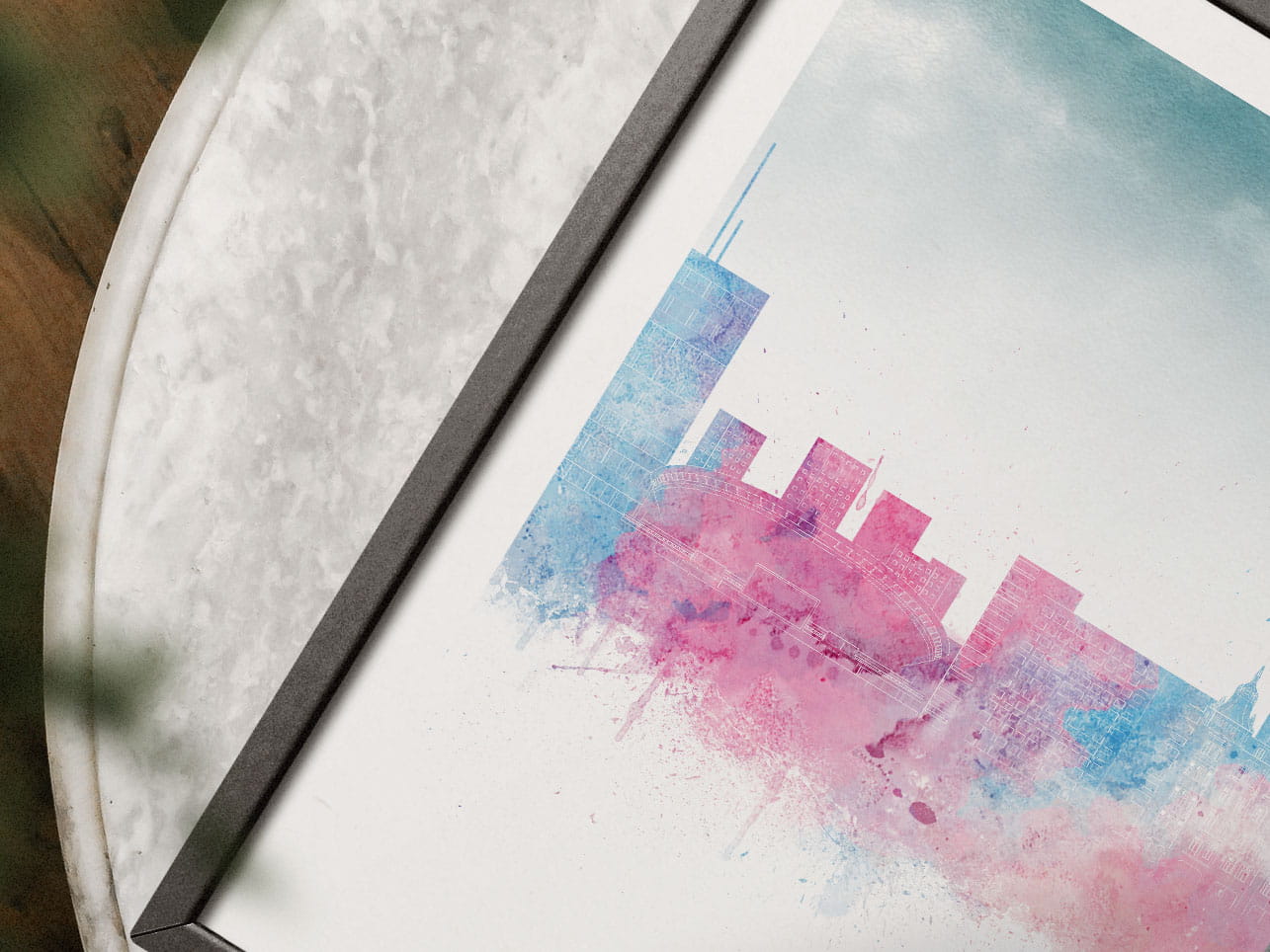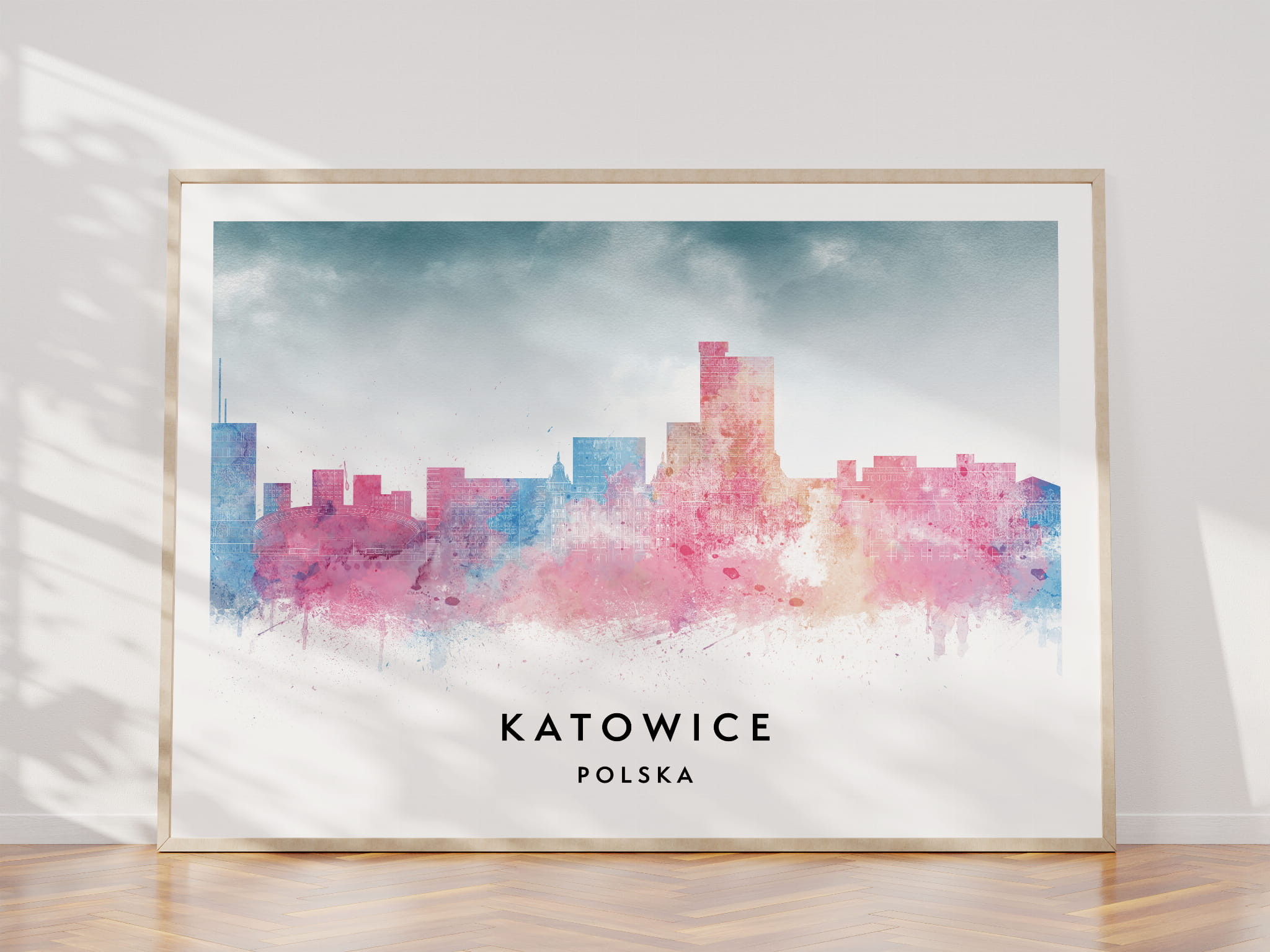 Plakat do salonu skylines Katowice w stylu Watercolor/ Akwarelowym