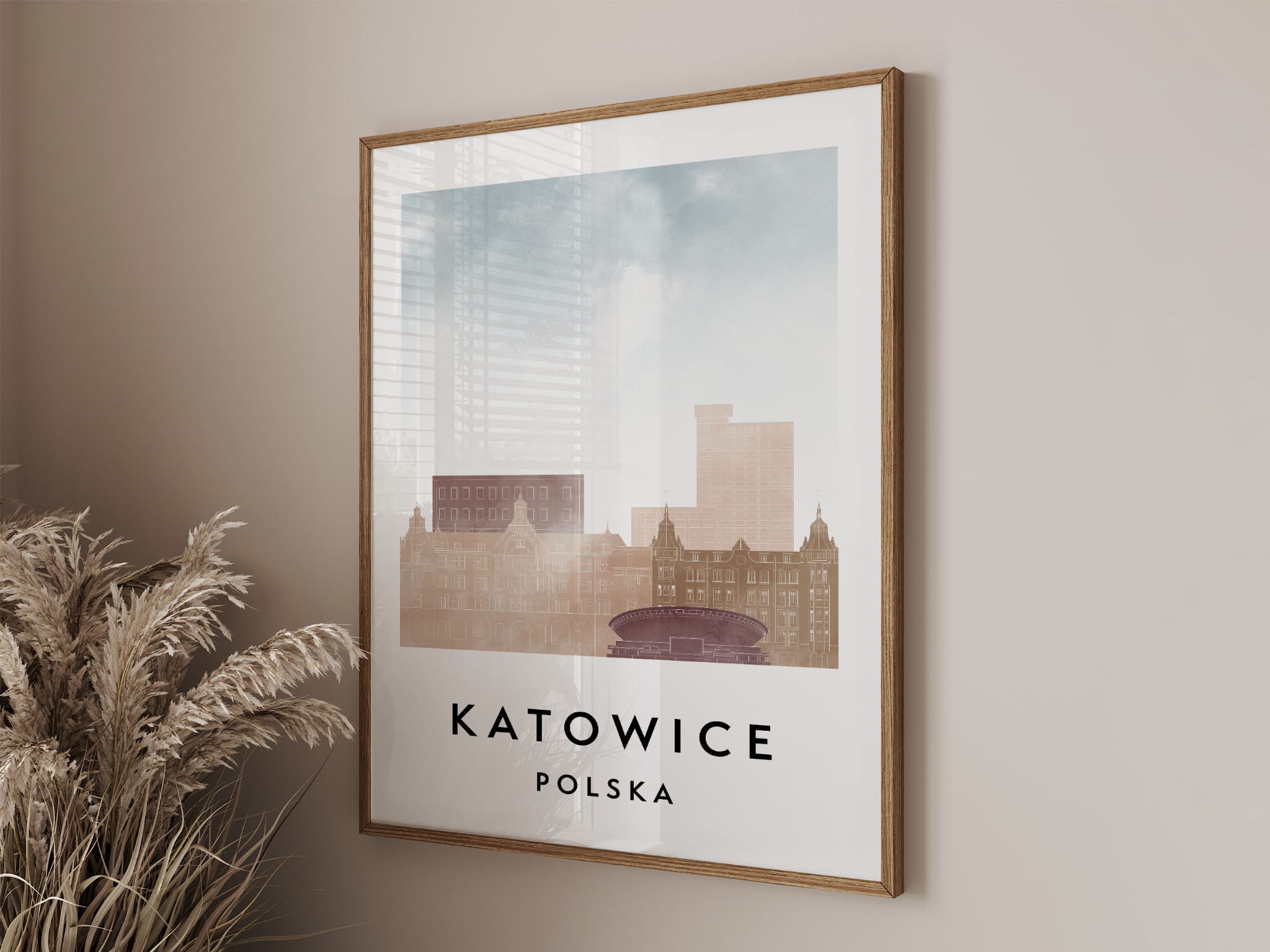 Plakat do salonu skylines Katowice w stylu Watercolor/ Akwarelowym