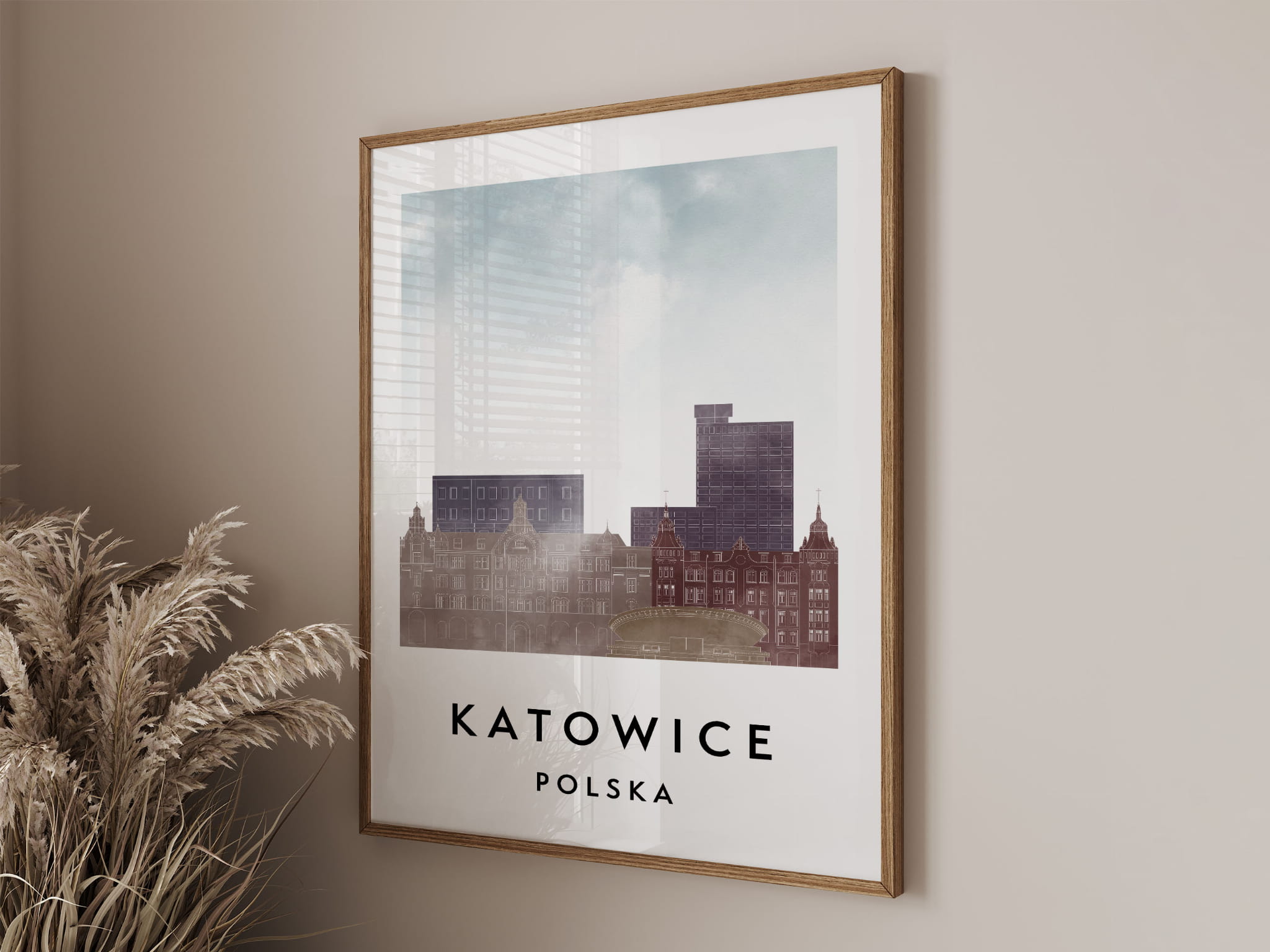 Plakat do salonu skylines Katowice w stylu Watercolor/ Akwarelowym
