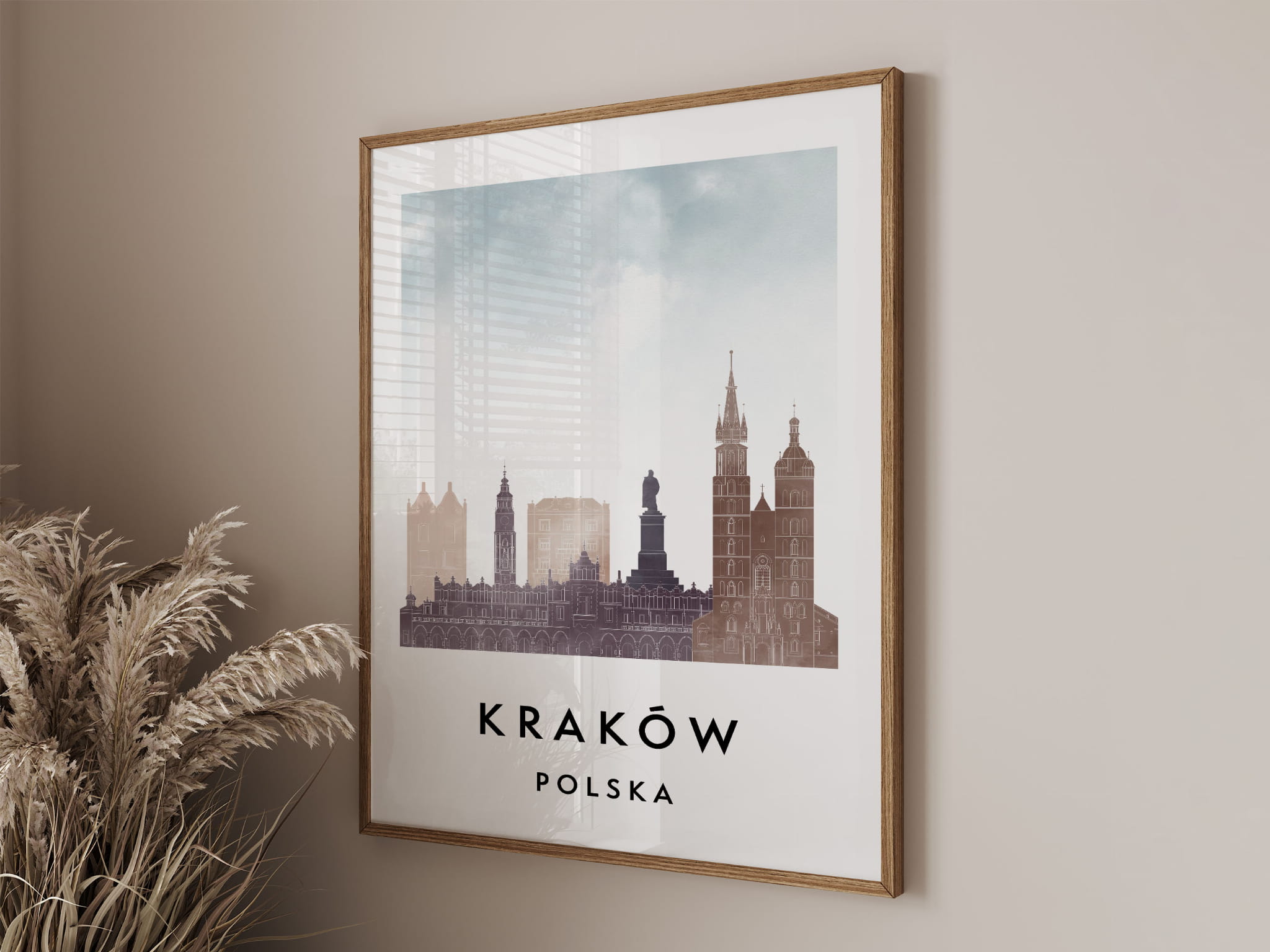 Plakat do salonu skylines Kraków stylu Watercolor/ Akwarelowym