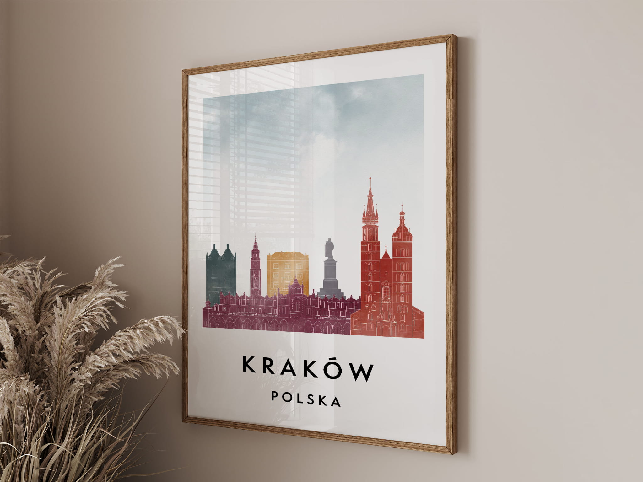 Plakat do salonu skylines Kraków stylu Watercolor/ Akwarelowym