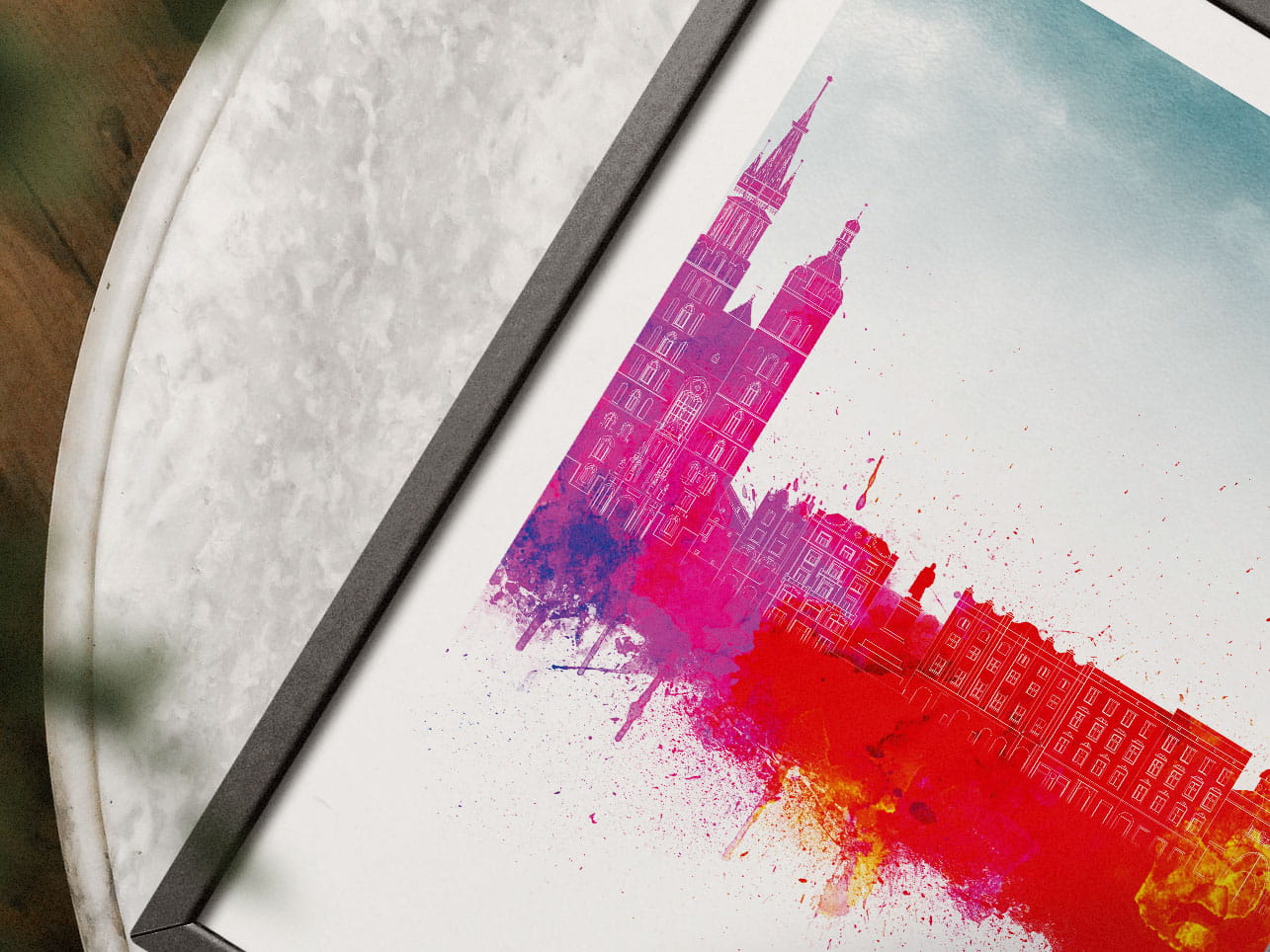 Plakat do salonu skylines Kraków w stylu Watercolor/ Akwarelowym