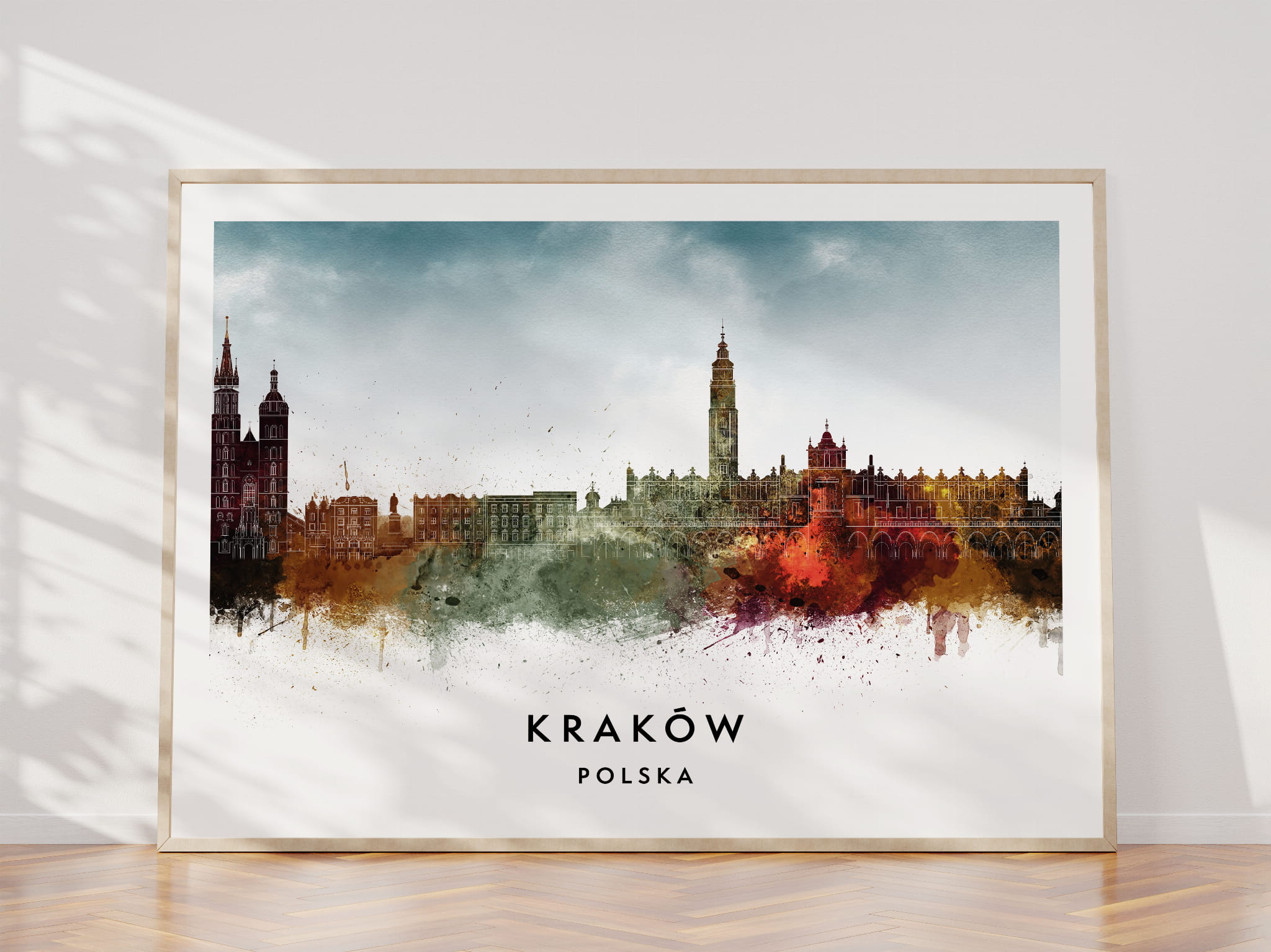 Plakat do salonu skylines Kraków w stylu Watercolor/ Akwarelowym