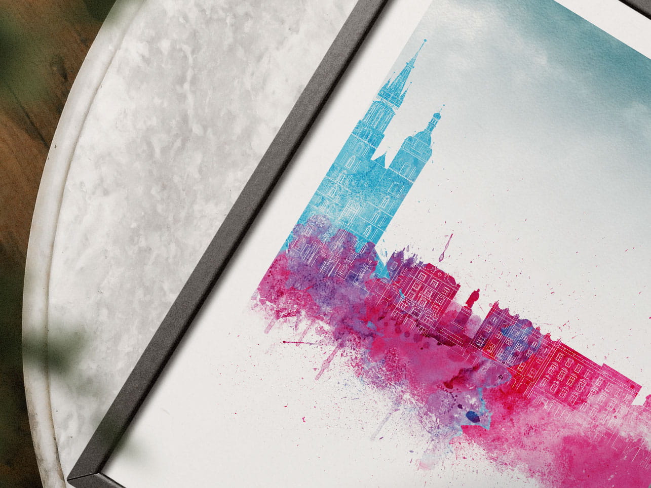 Plakat do salonu skylines Kraków w stylu Watercolor/ Akwarelowym