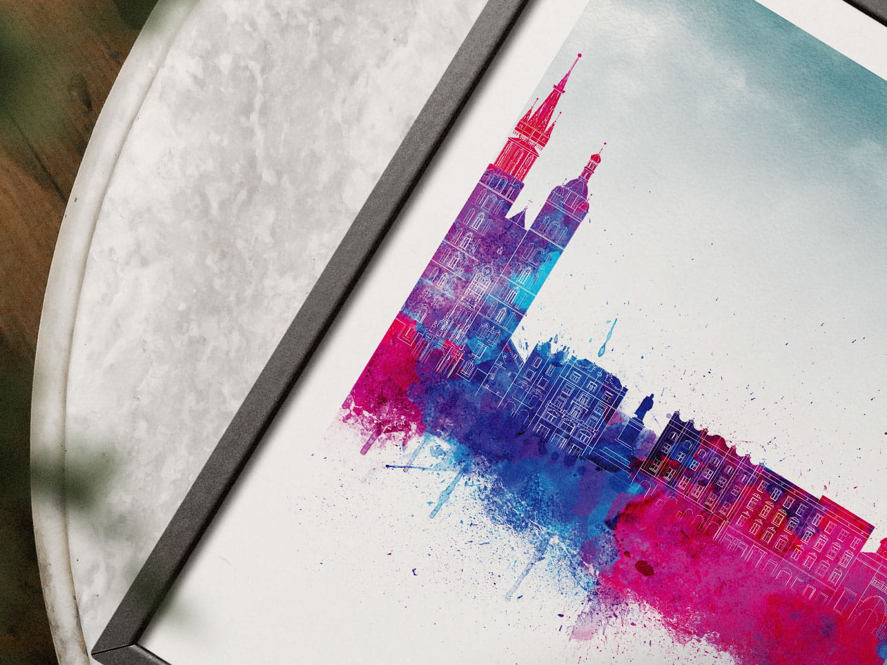 Plakat do salonu skylines Kraków w stylu Watercolor/ Akwarelowym