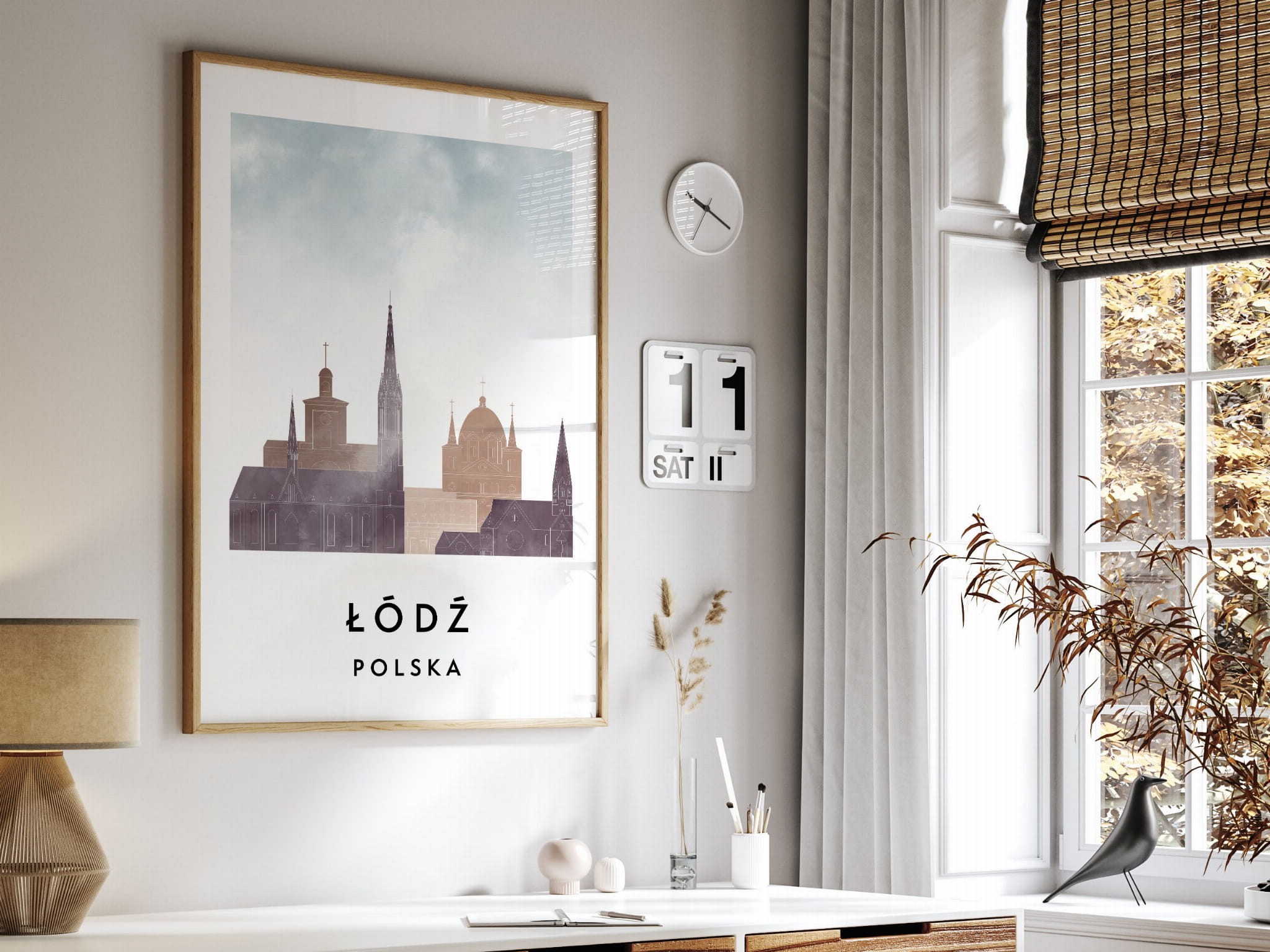 Plakat do salonu skylines Łódź stylu Watercolor/ Akwarelowym