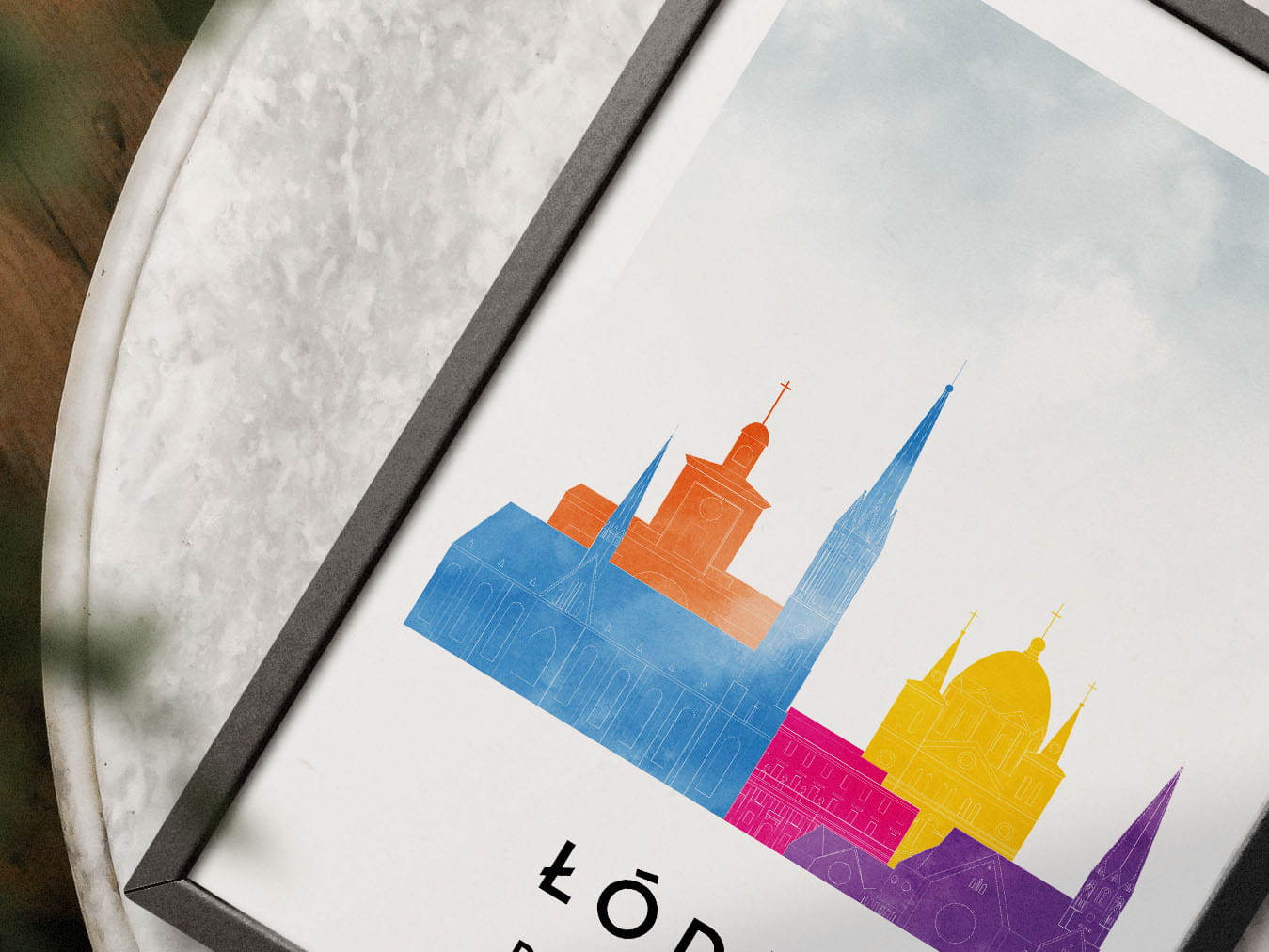 Plakat do salonu skylines Łódź stylu Watercolor/ Akwarelowym