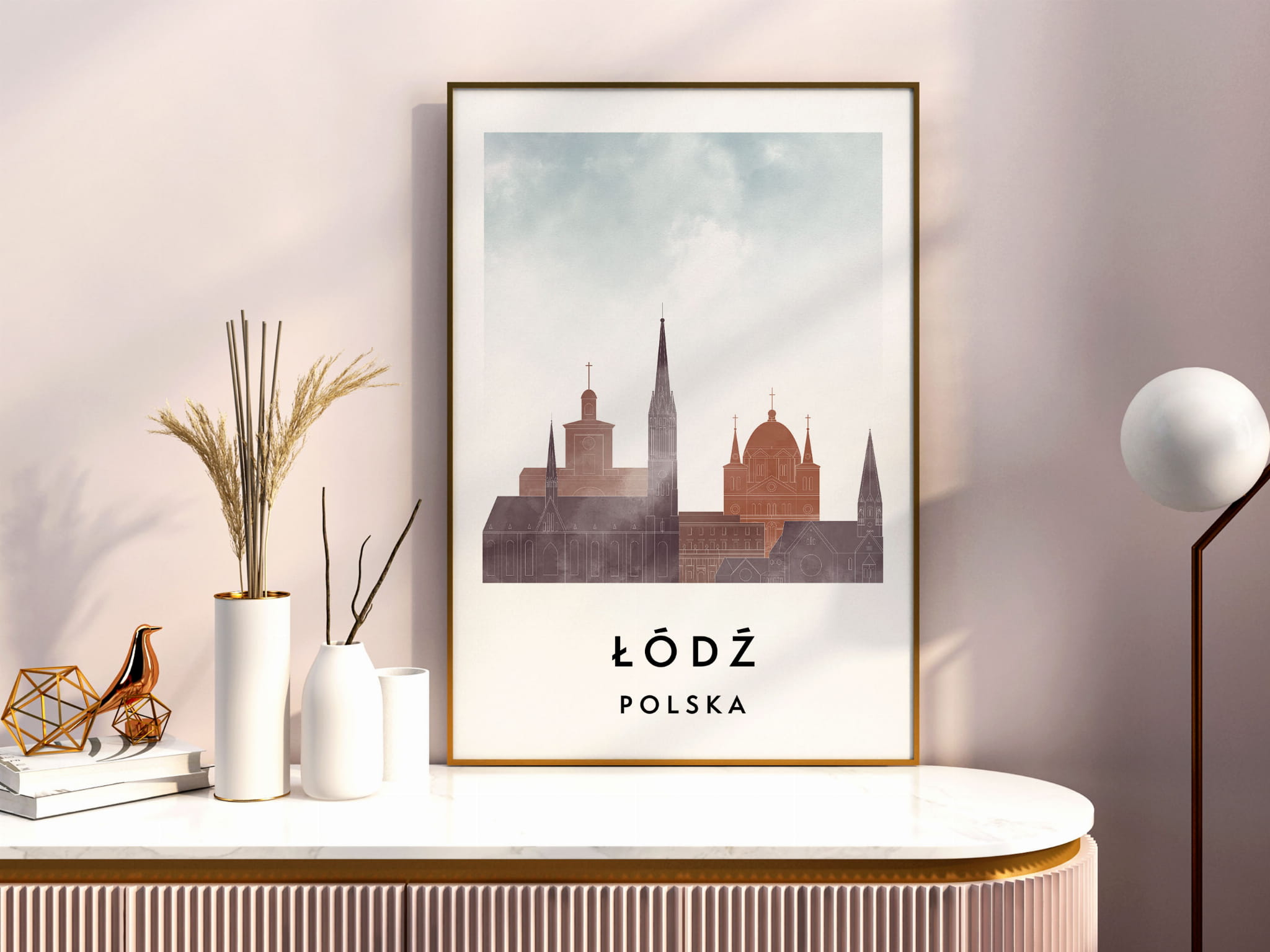 Plakat do salonu skylines Łódź stylu Watercolor/ Akwarelowym