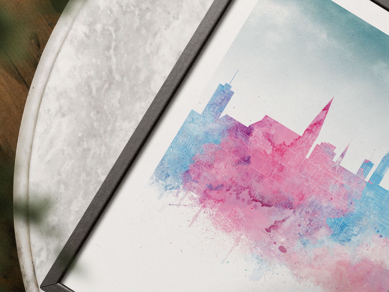 Plakat do salonu skylines Łódź w stylu Watercolor/ Akwarelowym
