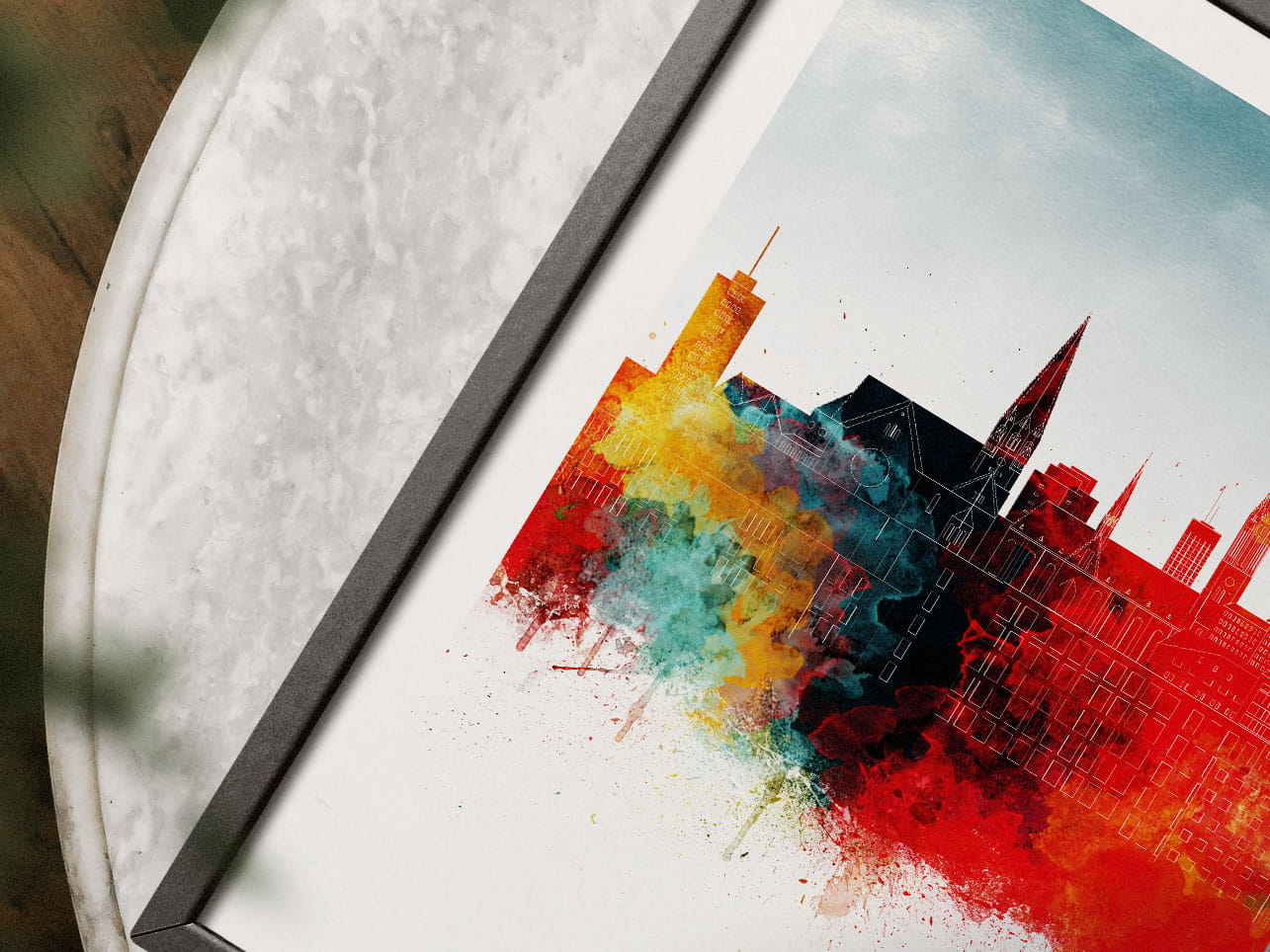 Plakat do salonu skylines Łódź w stylu Watercolor/ Akwarelowym