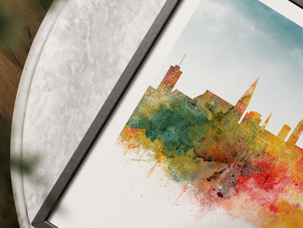 Plakat do salonu skylines Łódź w stylu Watercolor/ Akwarelowym