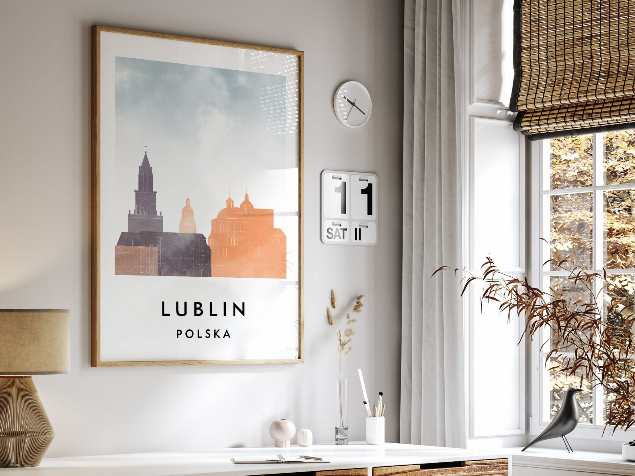 Plakat do salonu skylines Lublin stylu Watercolor/ Akwarelowym
