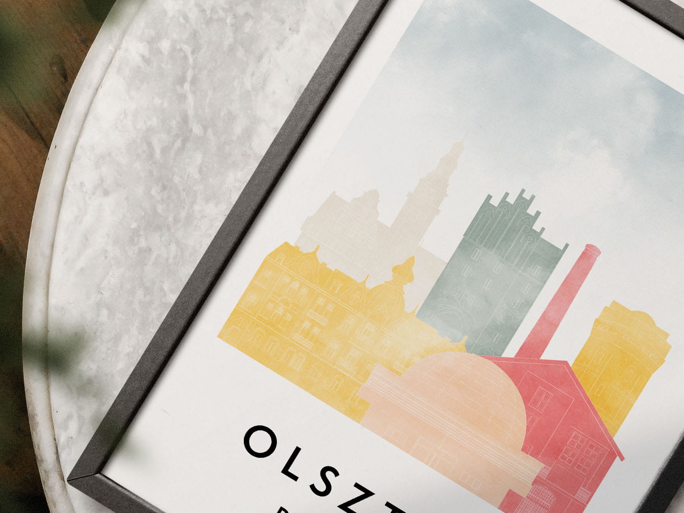 Plakat do salonu skylines Olsztyn stylu Watercolor/ Akwarelowym