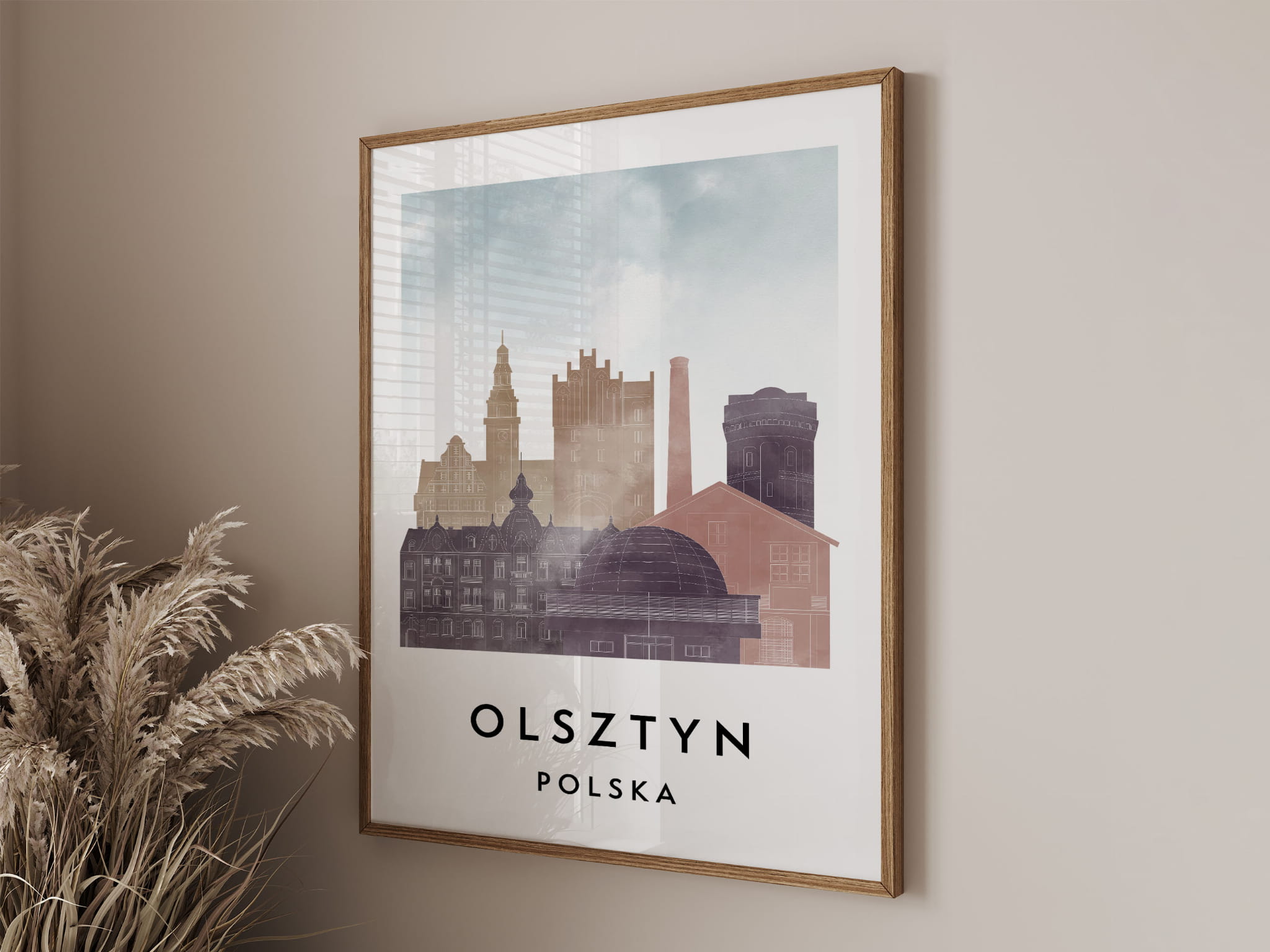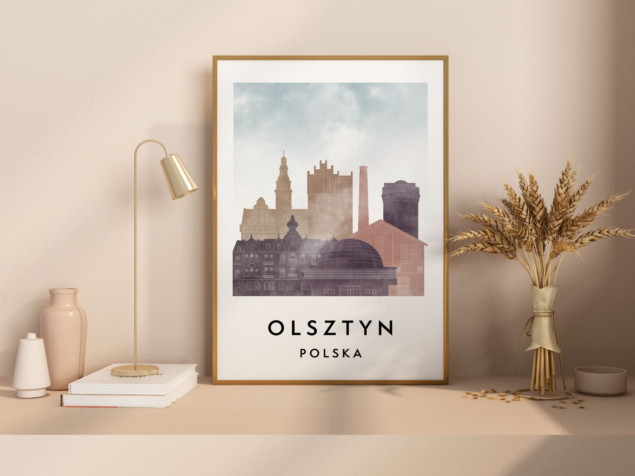 Plakat do salonu skylines Olsztyn stylu Watercolor/ Akwarelowym