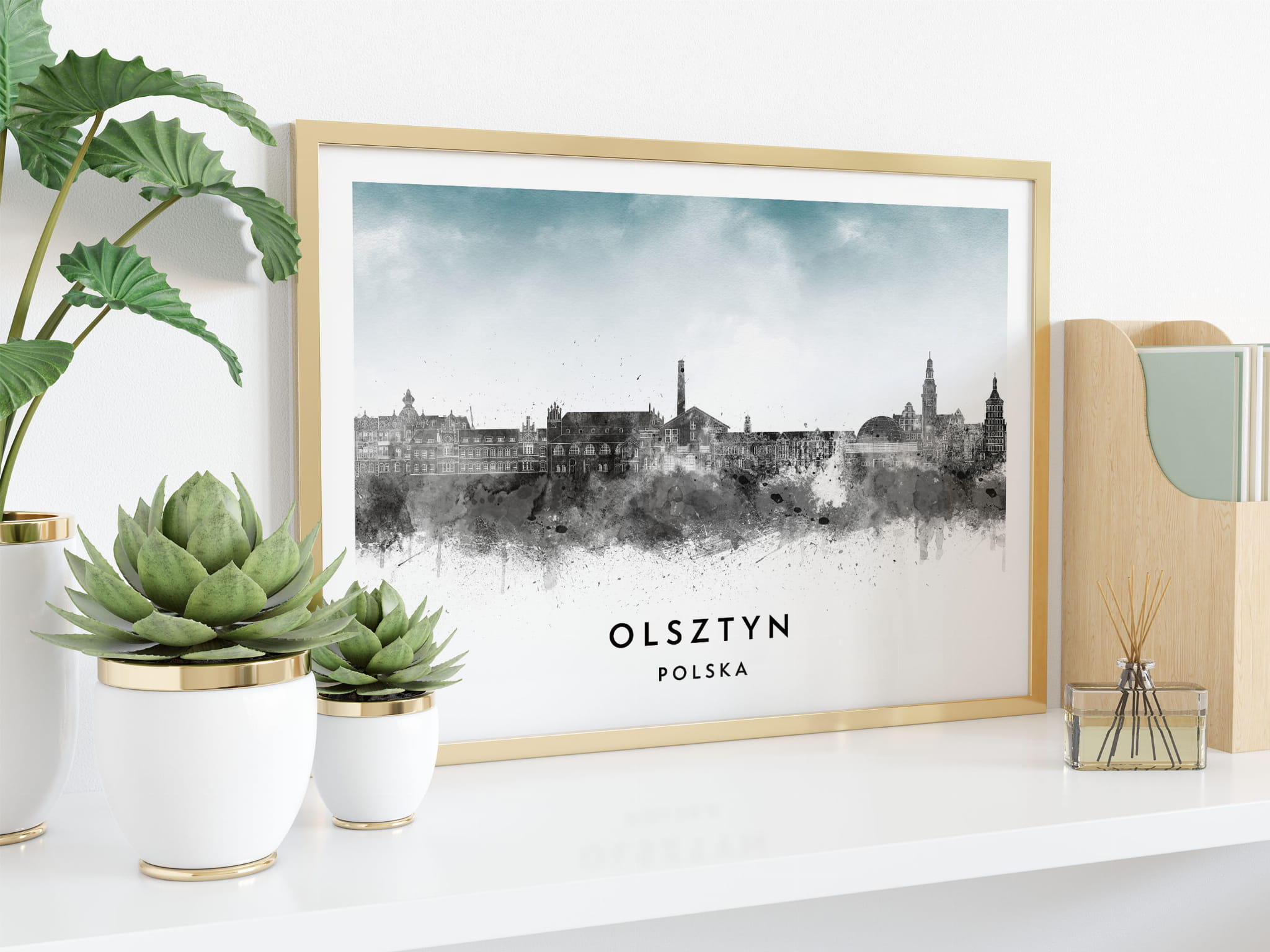 Plakat do salonu skylines Olsztyn w stylu Watercolor/ Akwarelowym