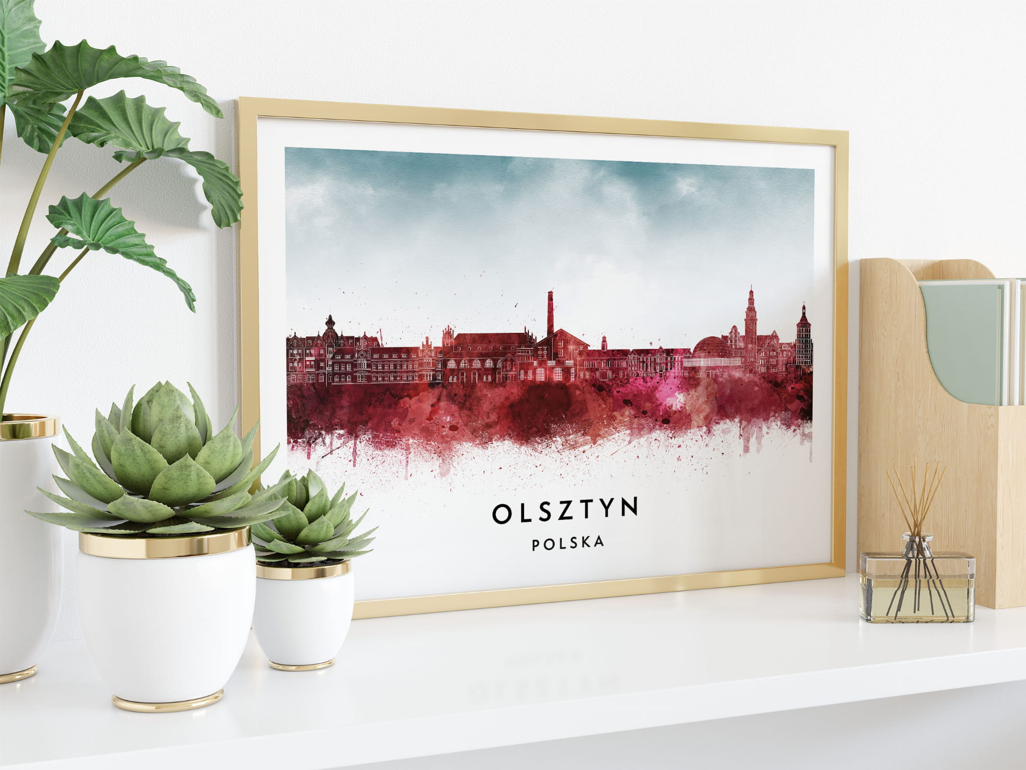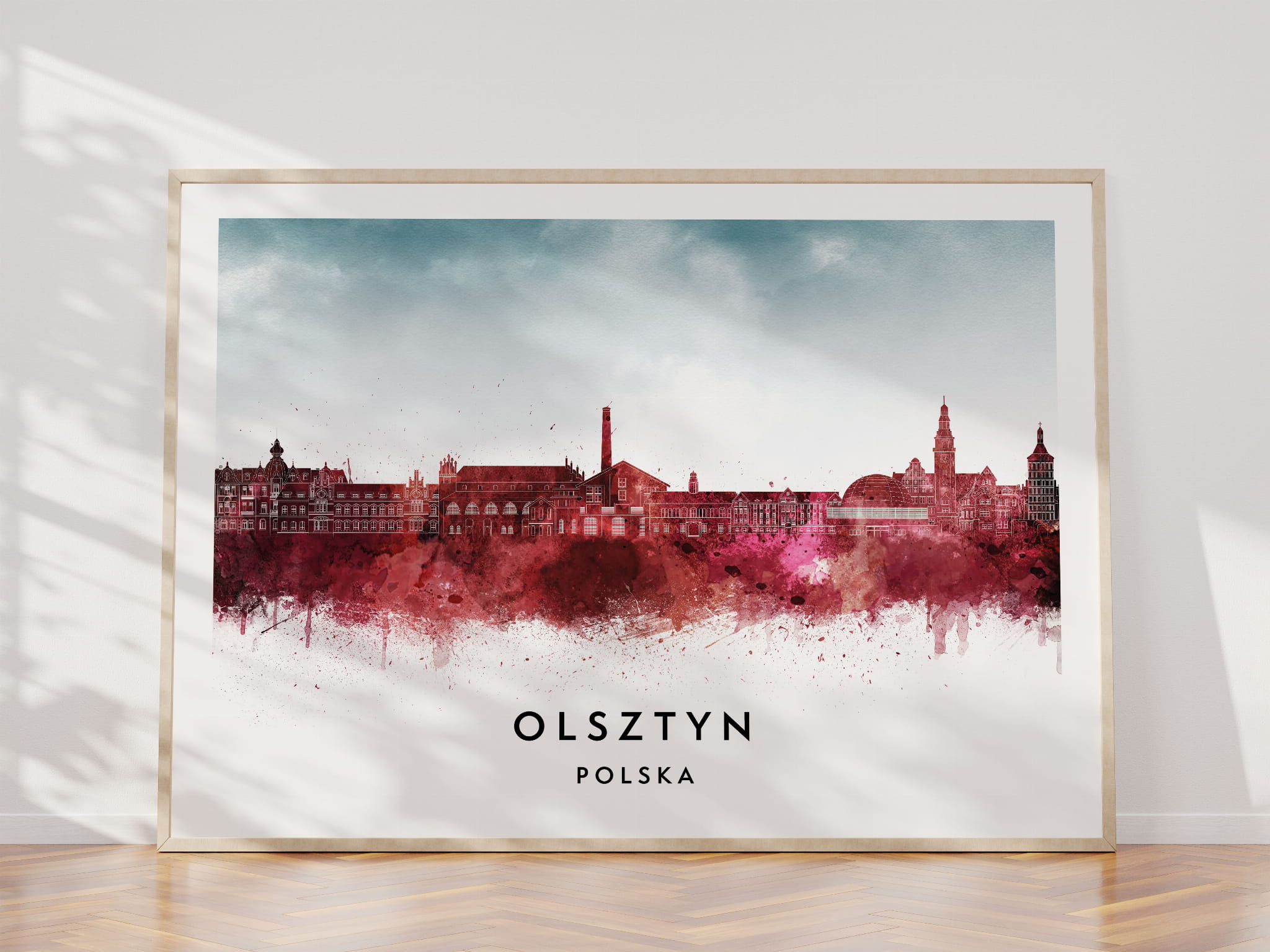 Plakat do salonu skylines Olsztyn w stylu Watercolor/ Akwarelowym