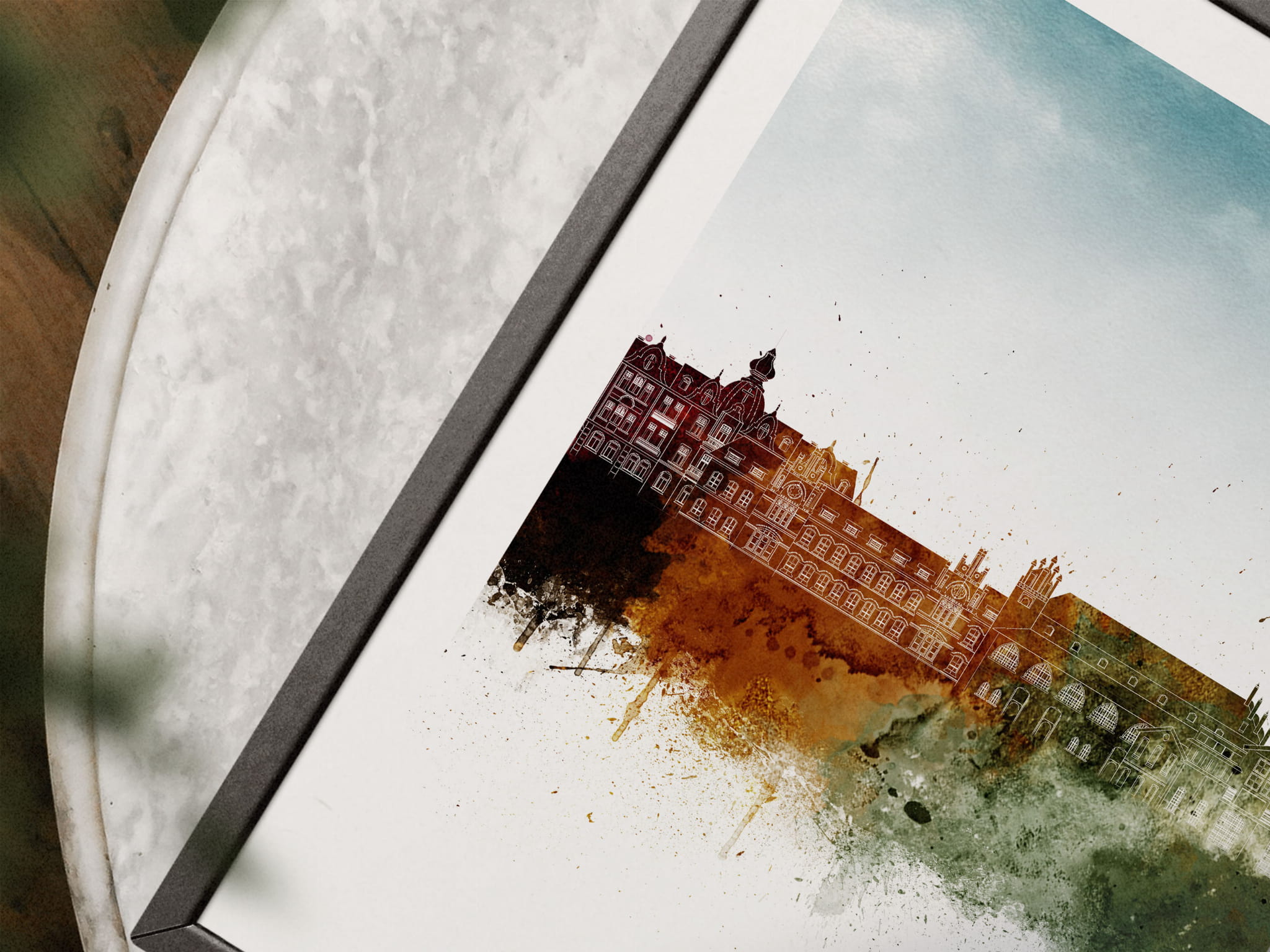 Plakat do salonu skylines Olsztyn w stylu Watercolor/ Akwarelowym