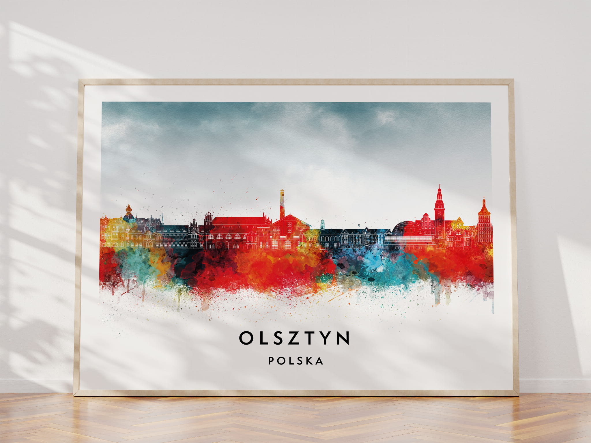 Plakat do salonu skylines Olsztyn w stylu Watercolor/ Akwarelowym