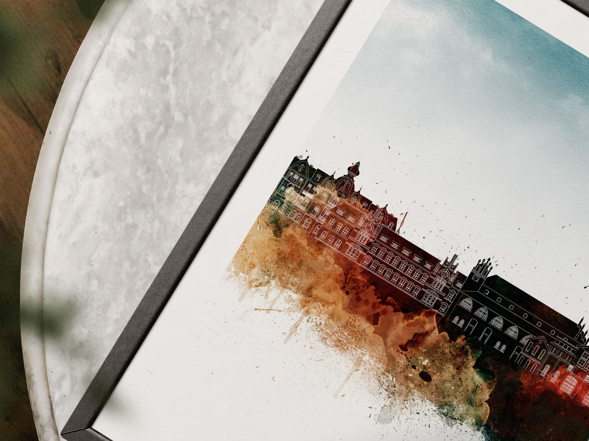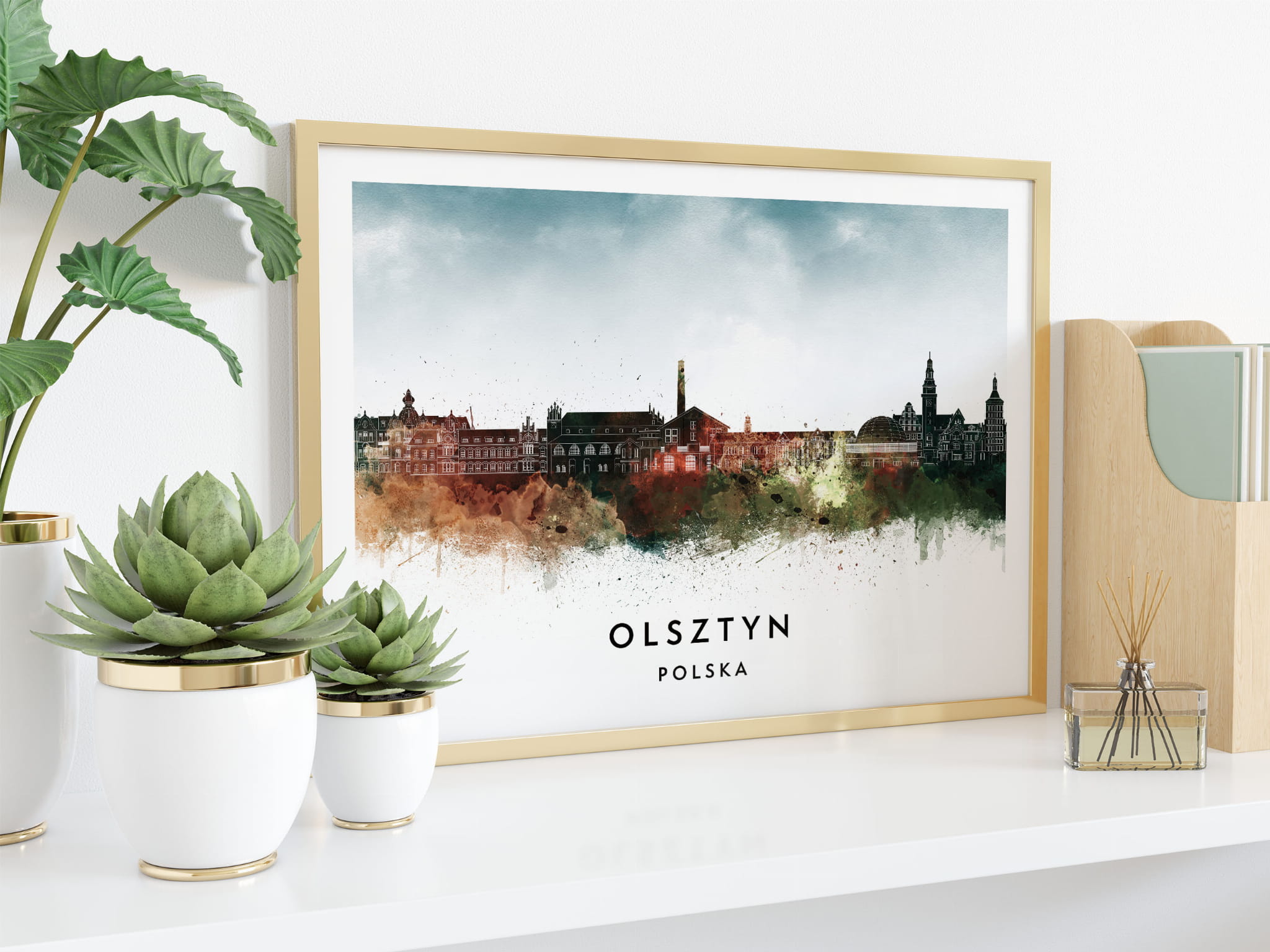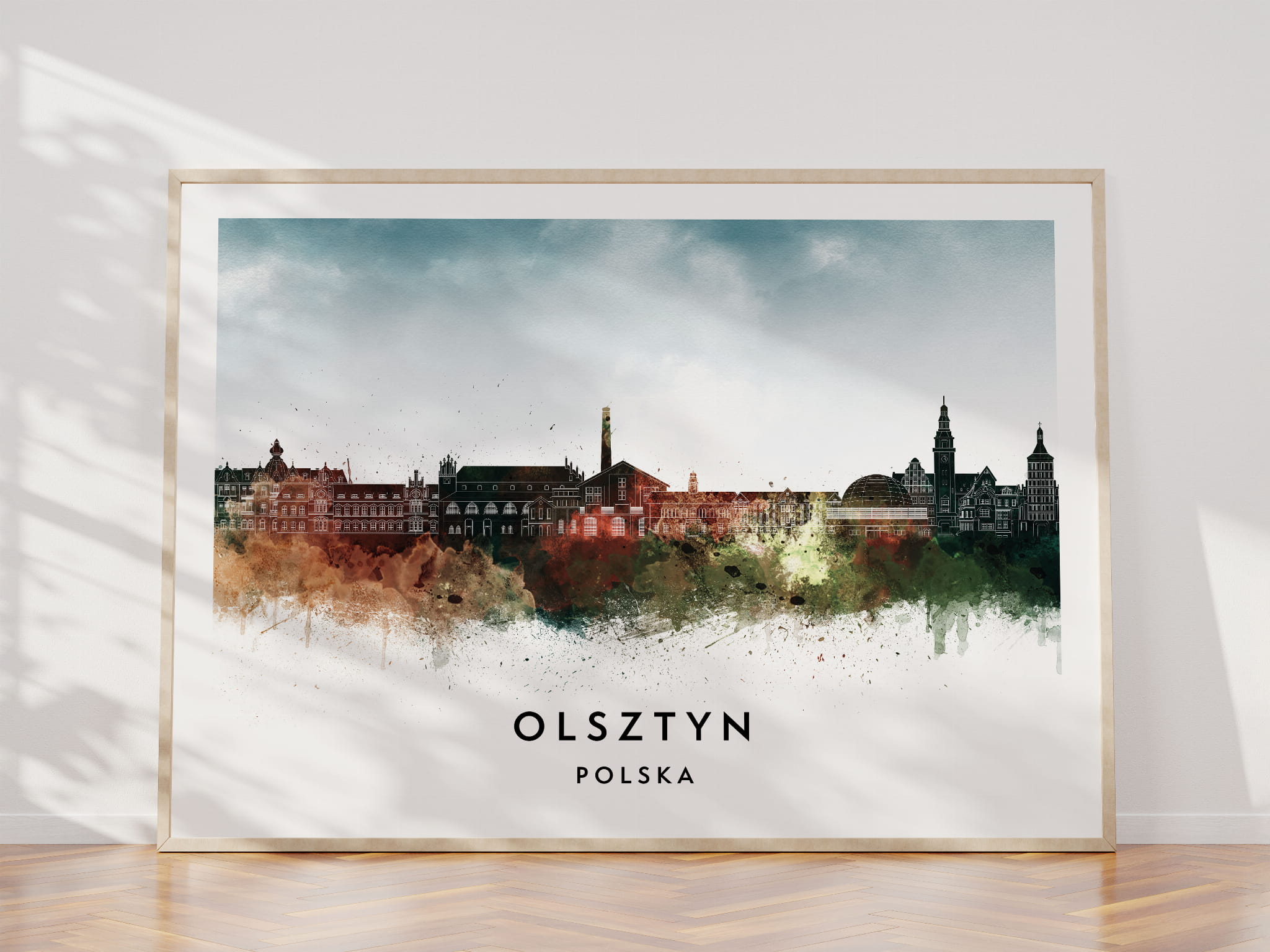 Plakat do salonu skylines Olsztyn w stylu Watercolor/ Akwarelowym