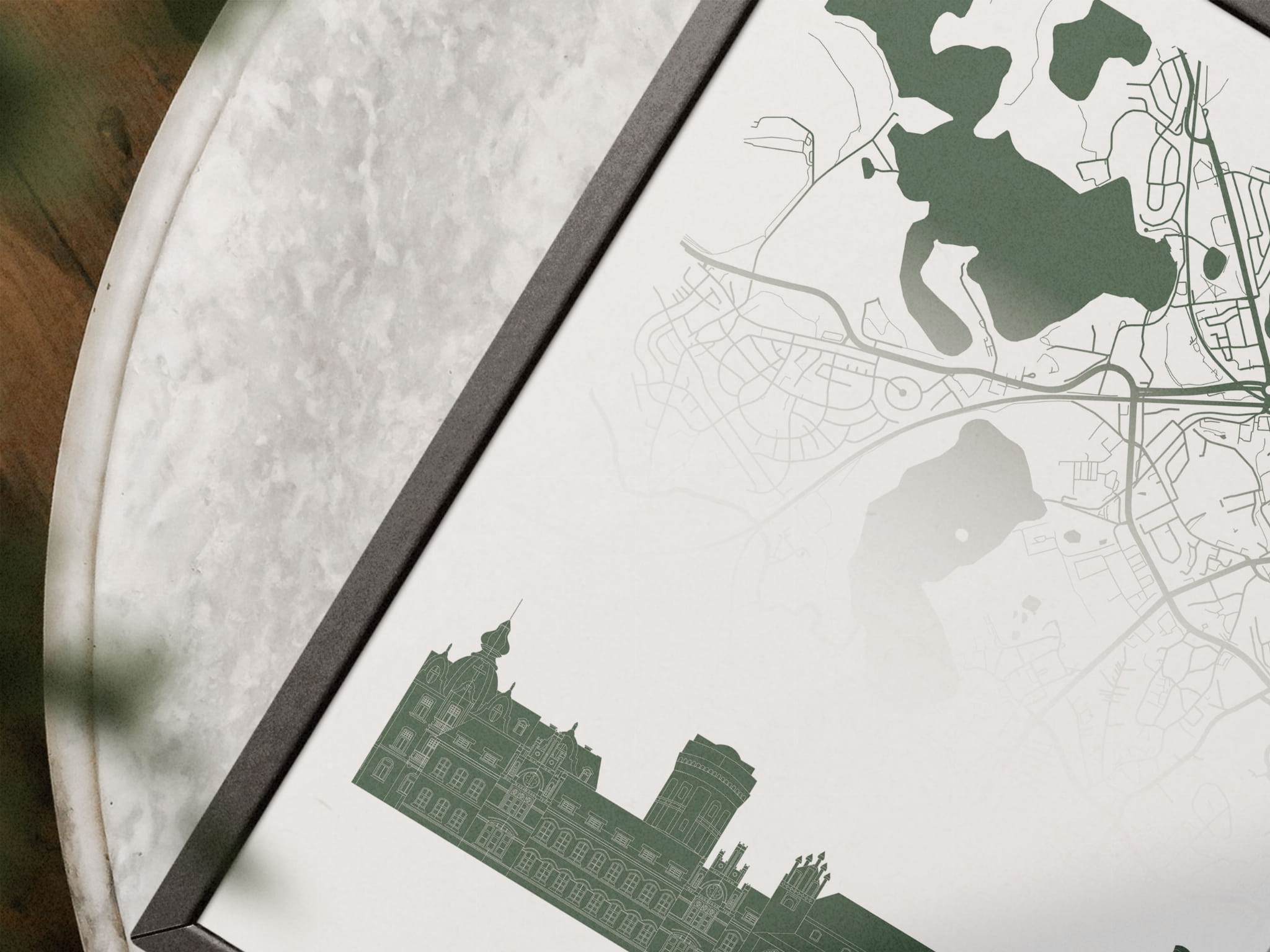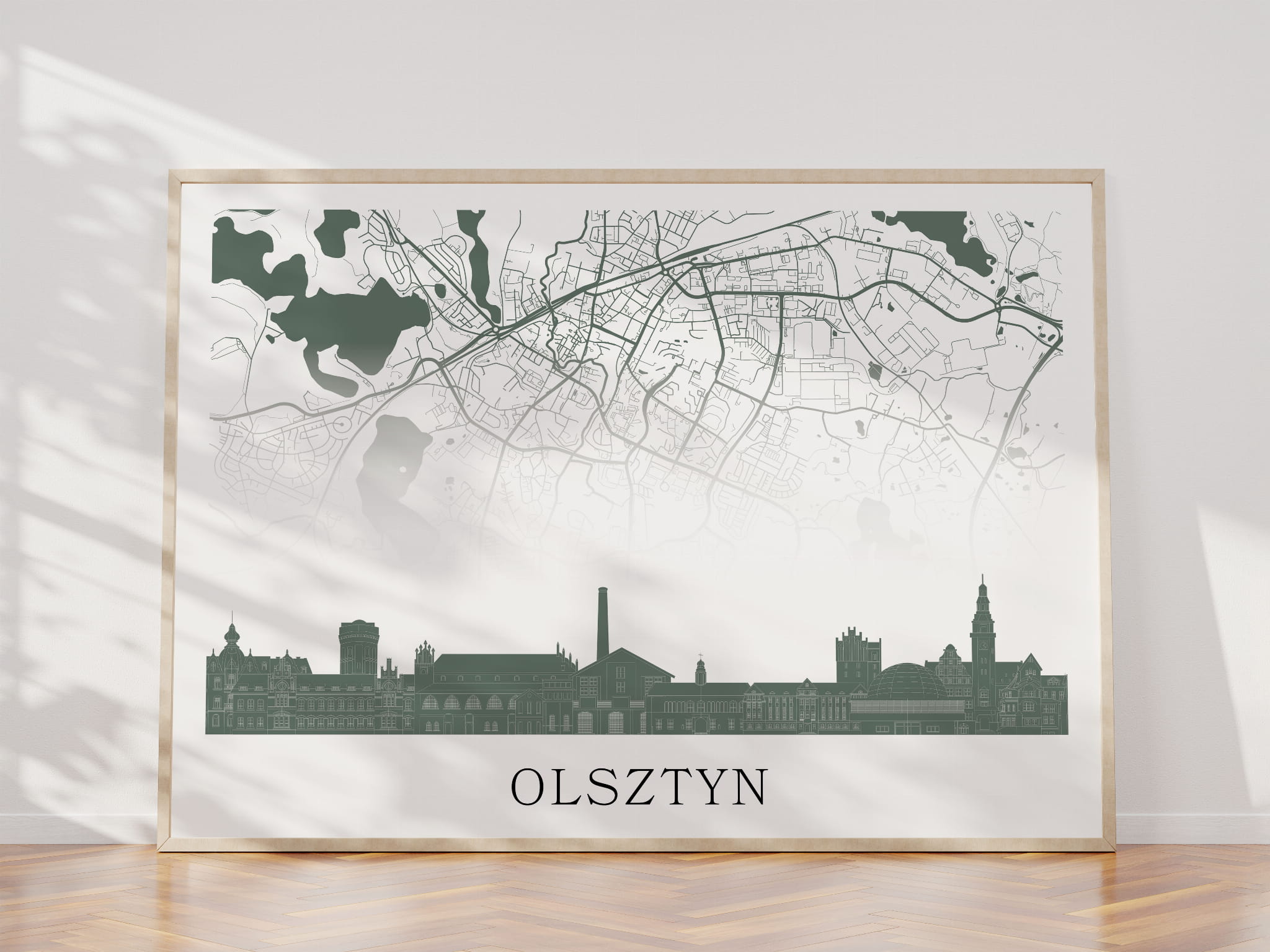 Plakat do salonu skylines Olsztyn z mapą