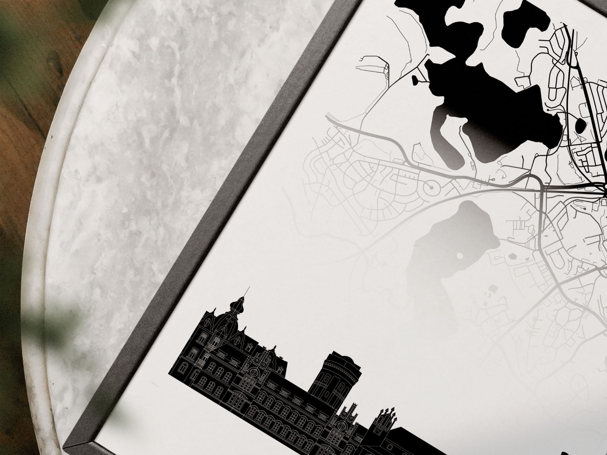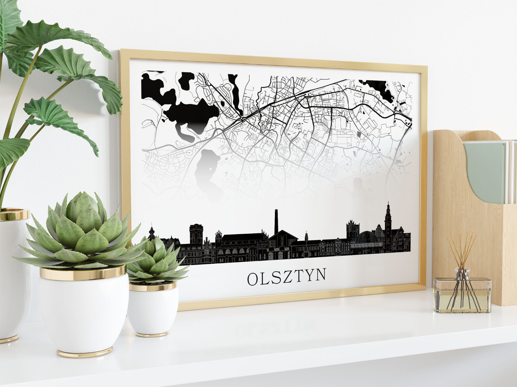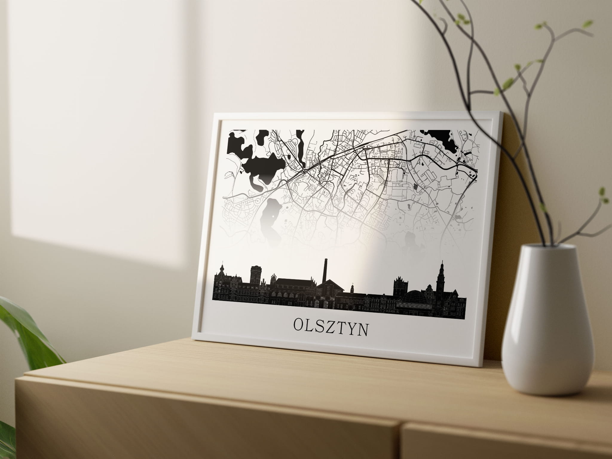 Plakat do salonu skylines Olsztyn z mapą