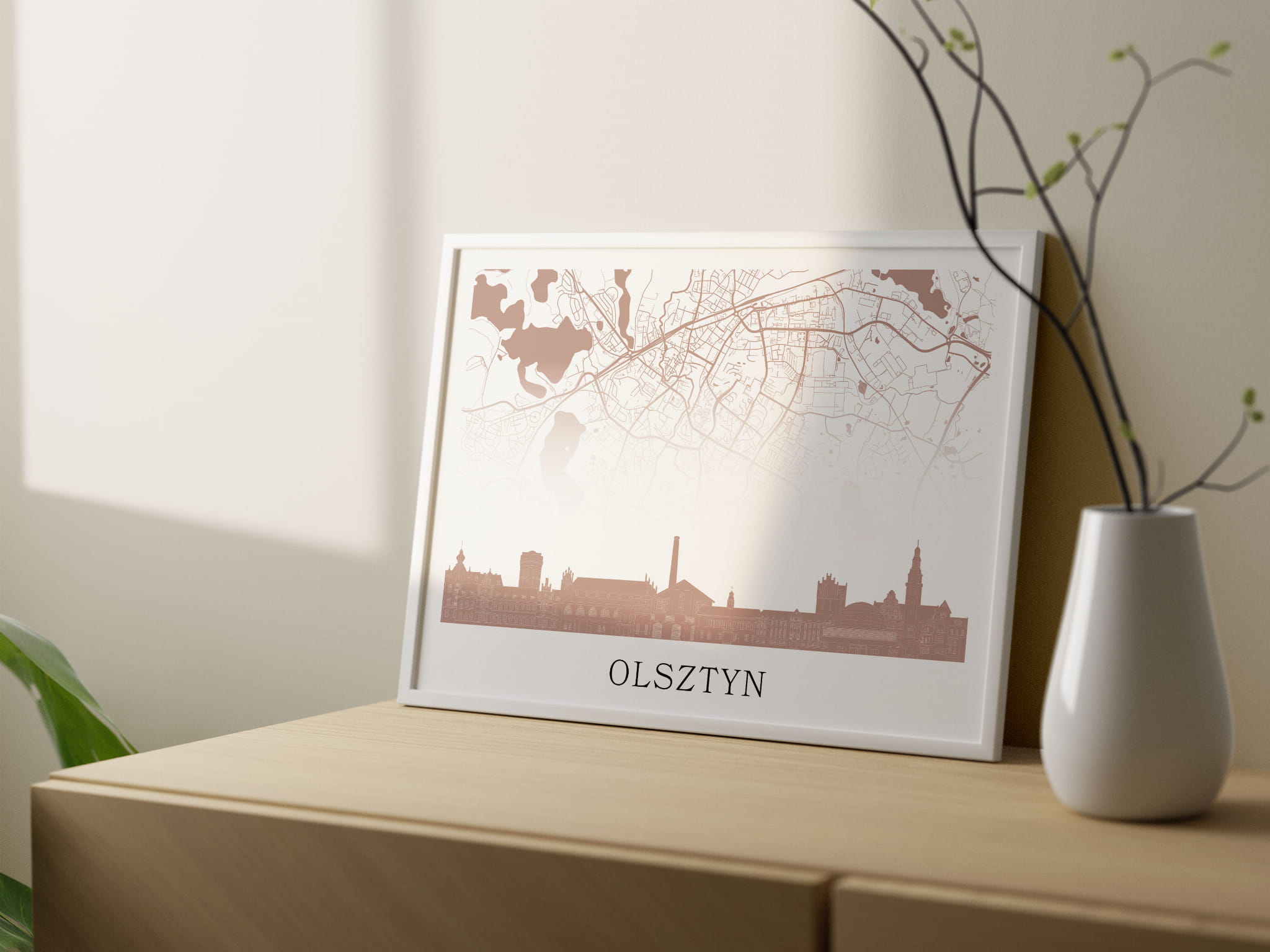 Plakat do salonu skylines Olsztyn z mapą