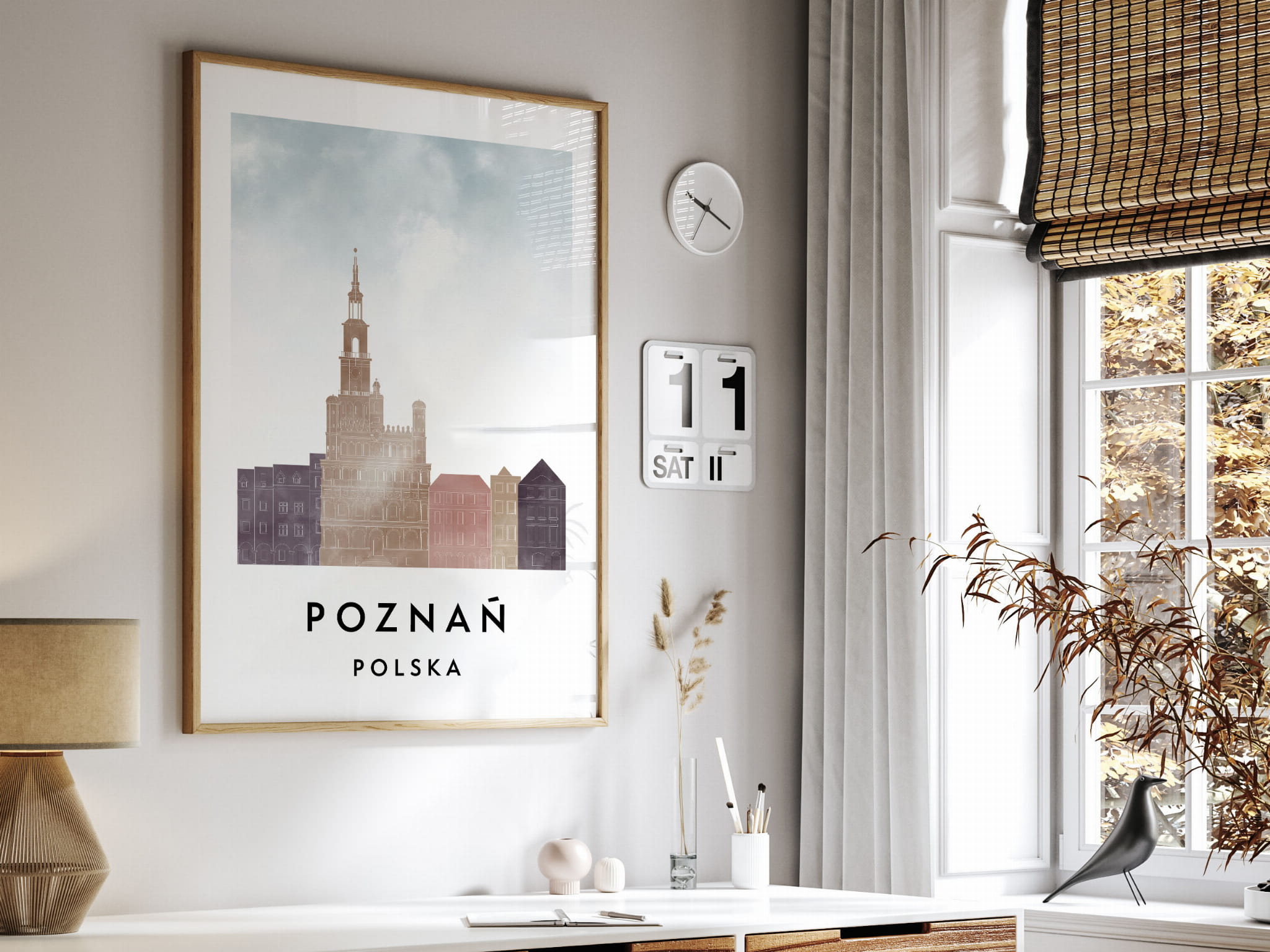 Plakat do salonu skylines Poznań stylu Watercolor/ Akwarelowym