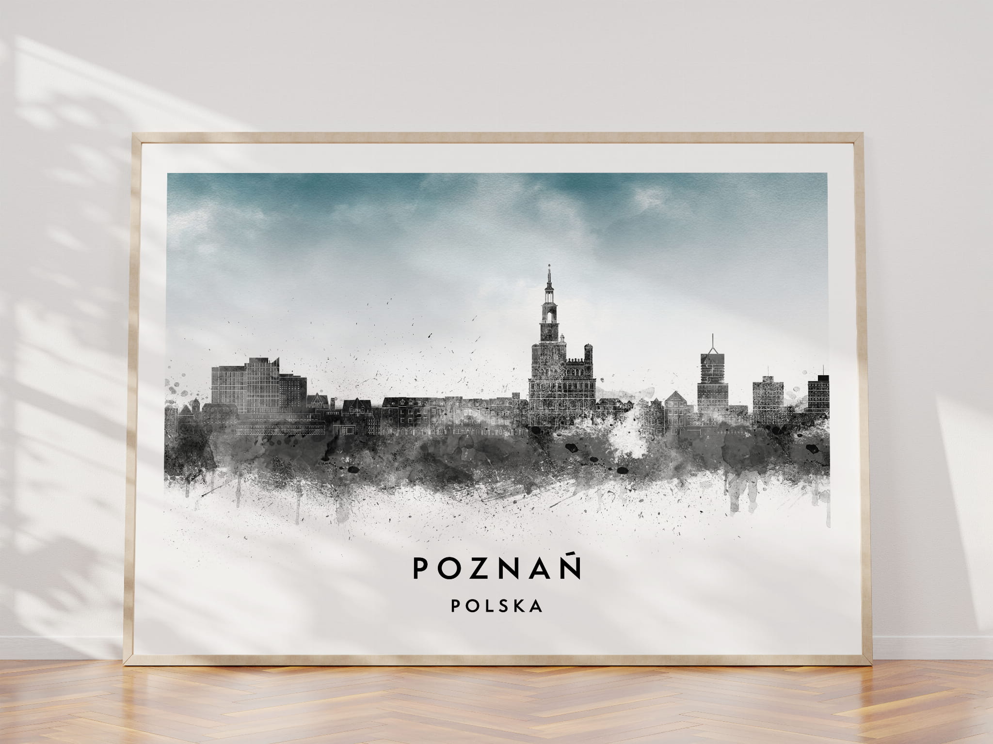 Plakat do salonu skylines Poznań w stylu Watercolor/ Akwarelowym