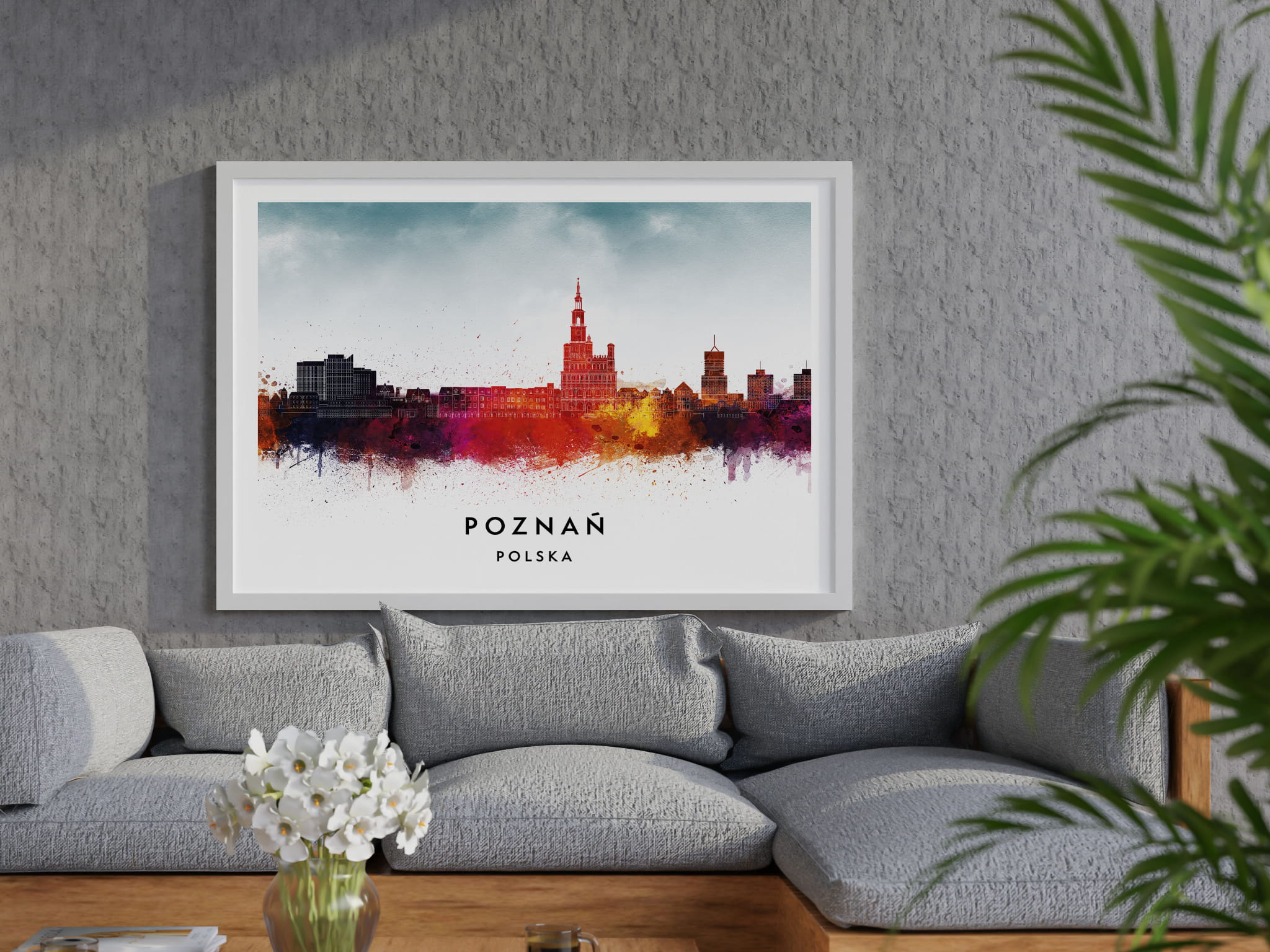 Plakat do salonu skylines Poznań w stylu Watercolor/ Akwarelowym