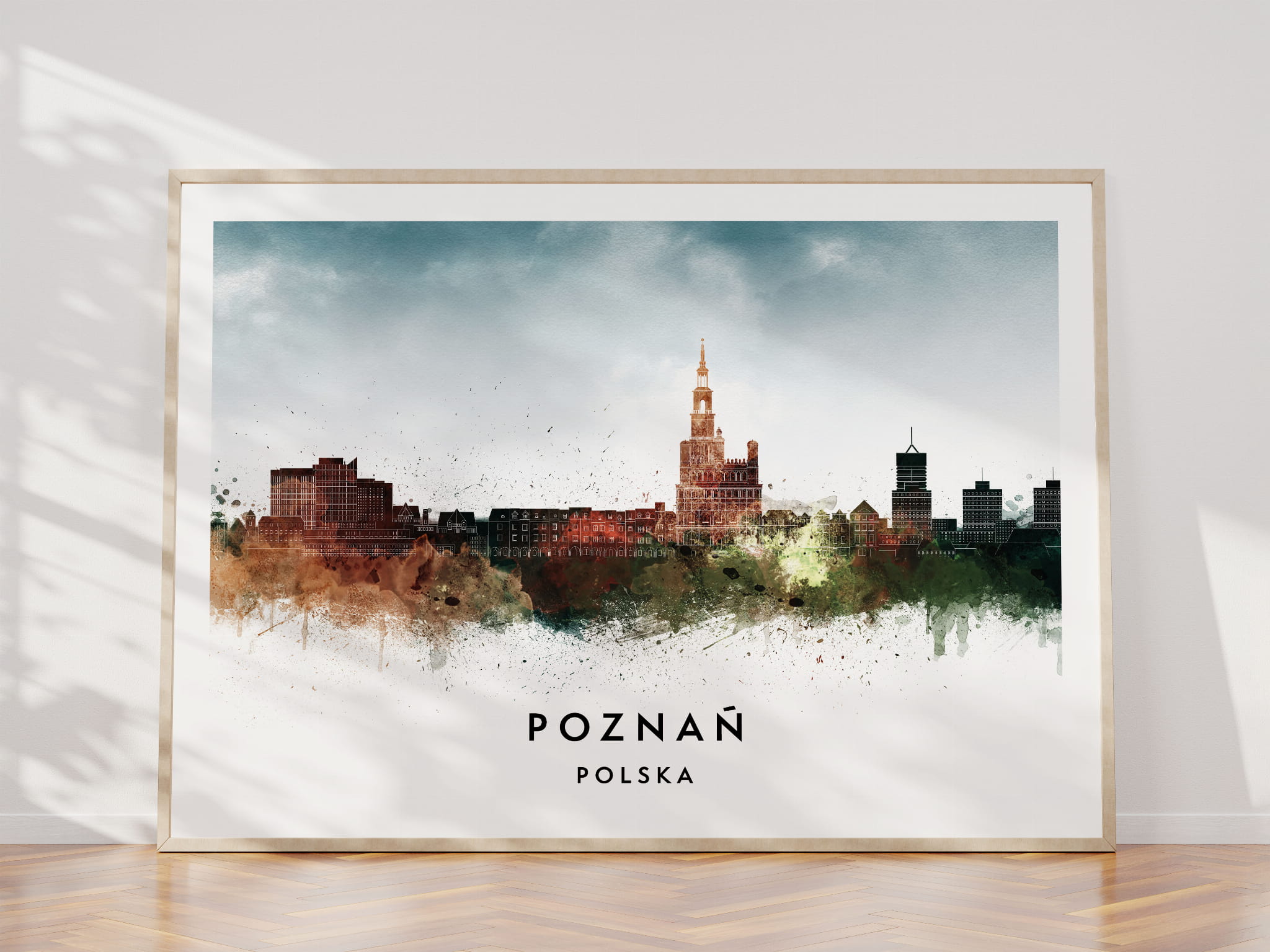Plakat do salonu skylines Poznań w stylu Watercolor/ Akwarelowym