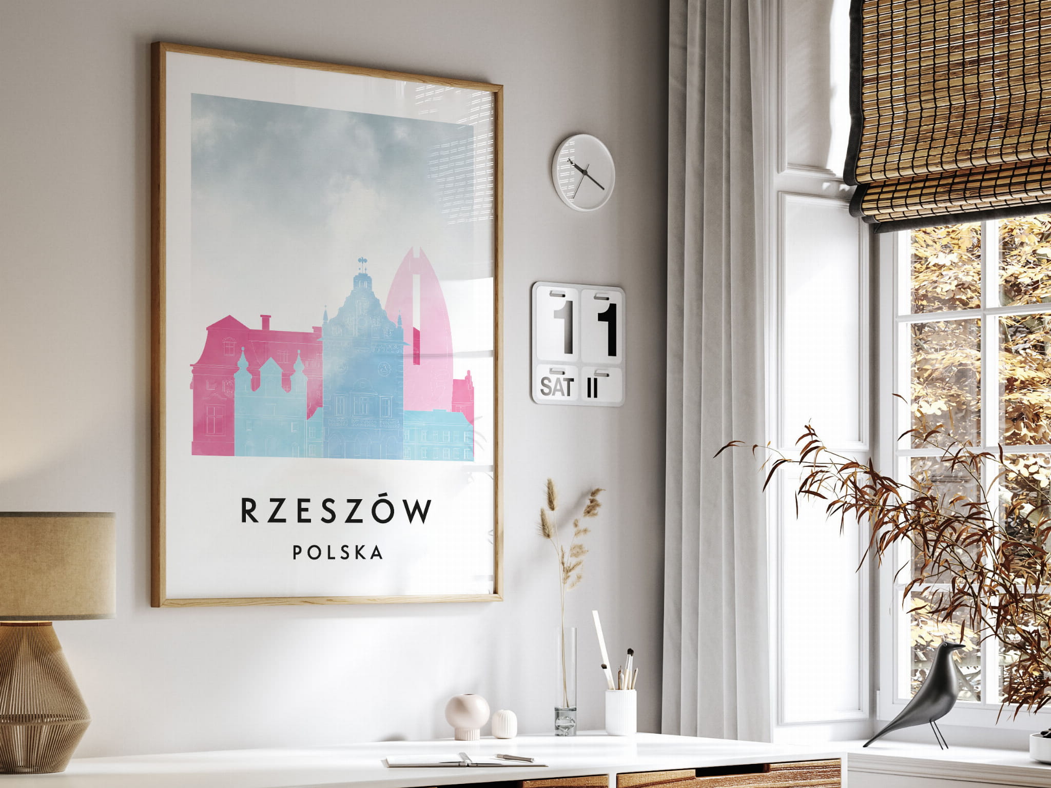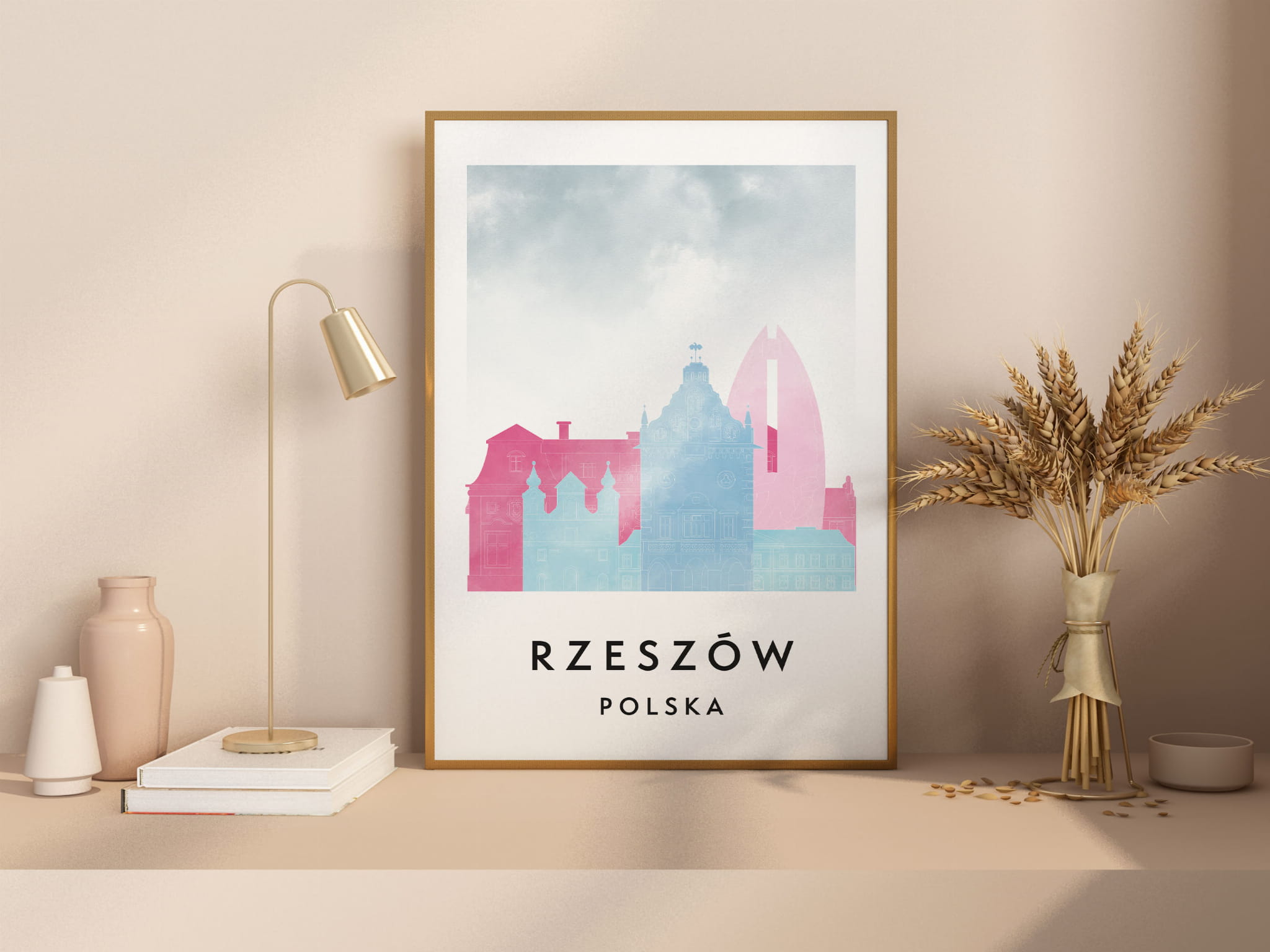 Plakat do salonu skylines Rzeszów w stylu Watercolor/ Akwarelowym
