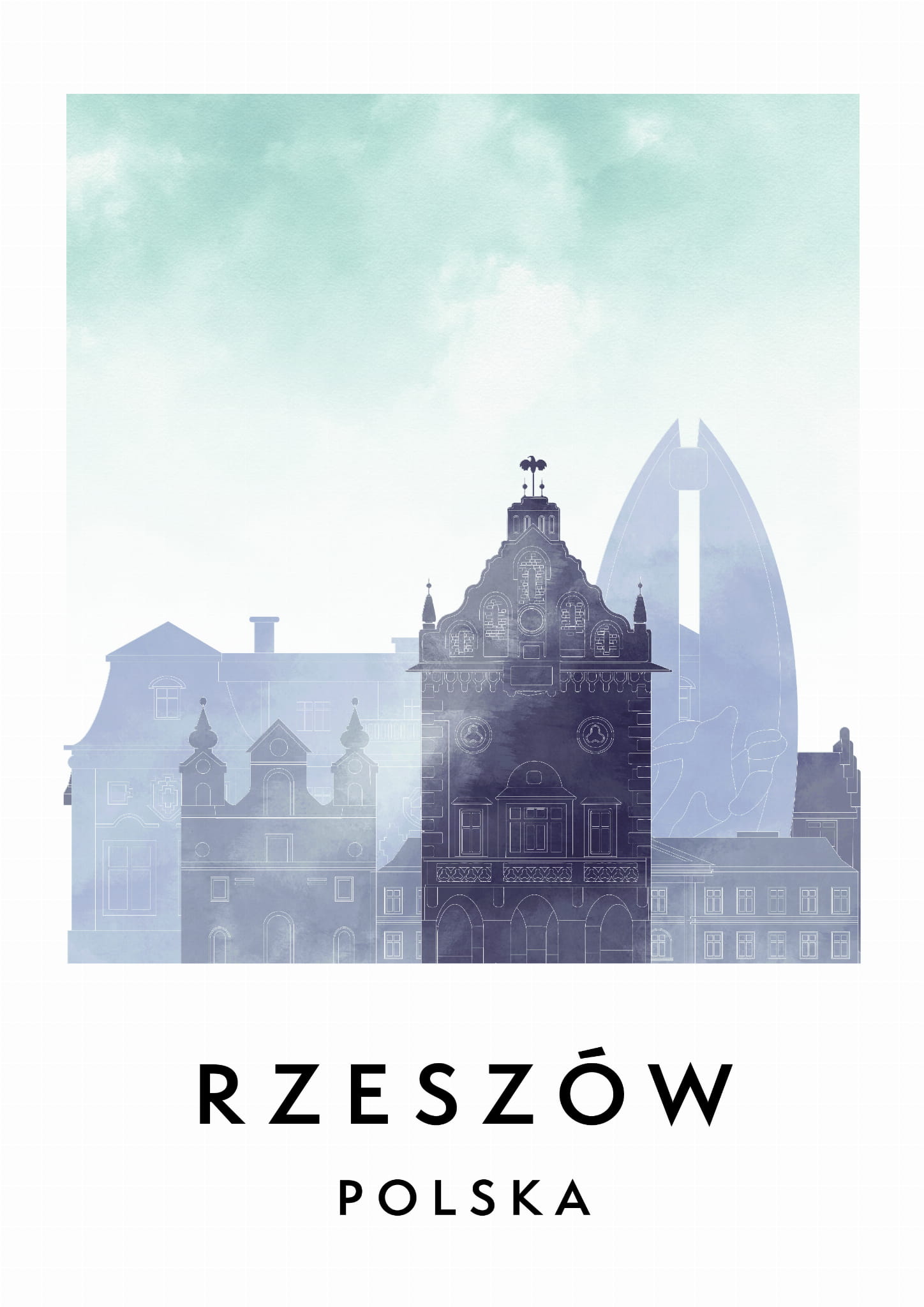 Plakat do salonu skylines Rzeszów w stylu Watercolor/ Akwarelowym