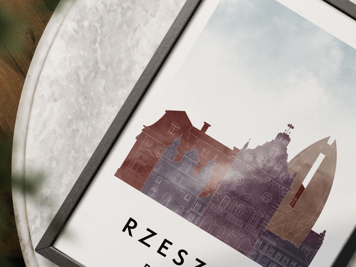 Plakat do salonu skylines Rzeszów w stylu Watercolor/ Akwarelowym