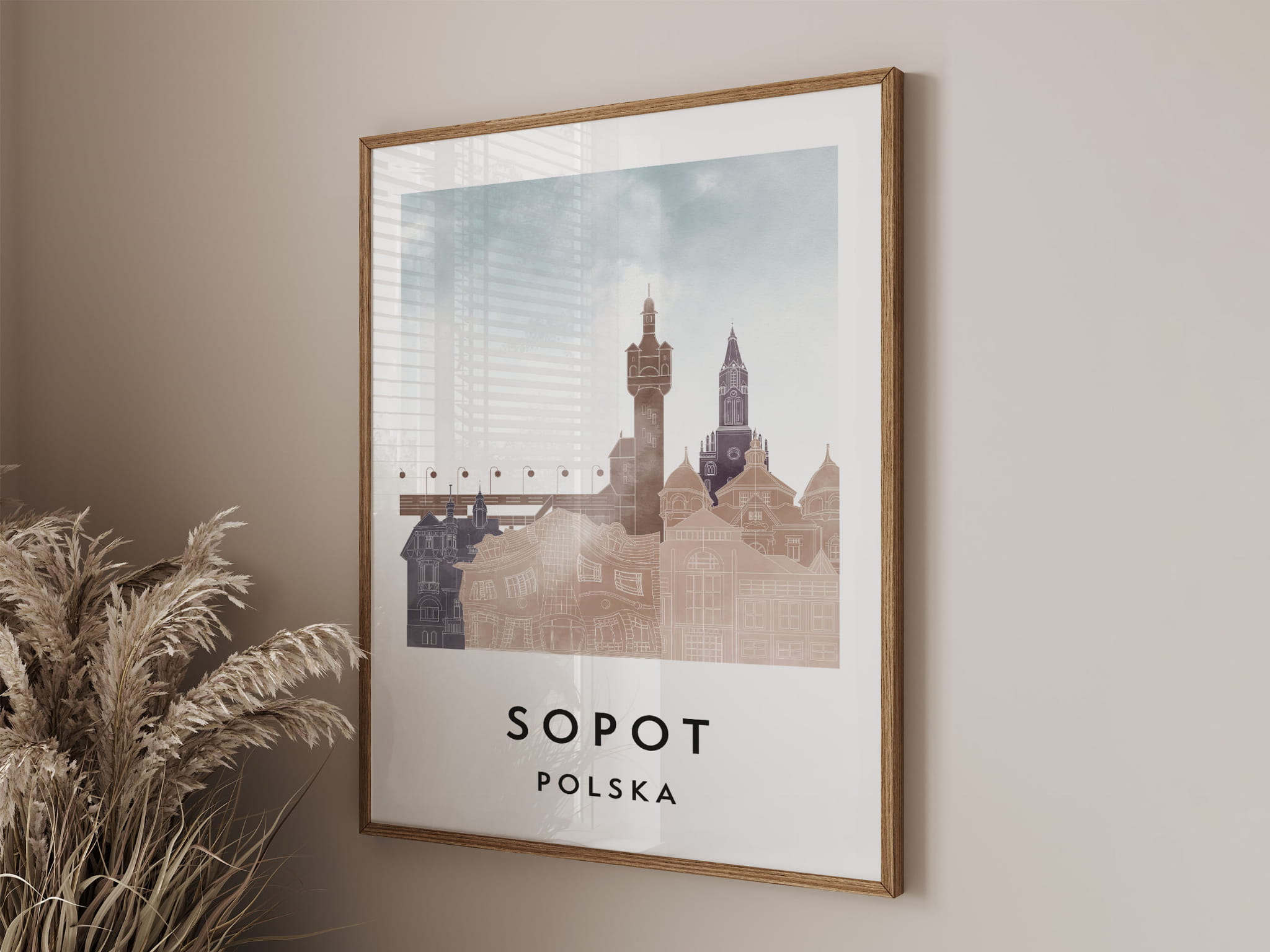 Plakat do salonu skylines Sopot stylu Watercolor/ Akwarelowym