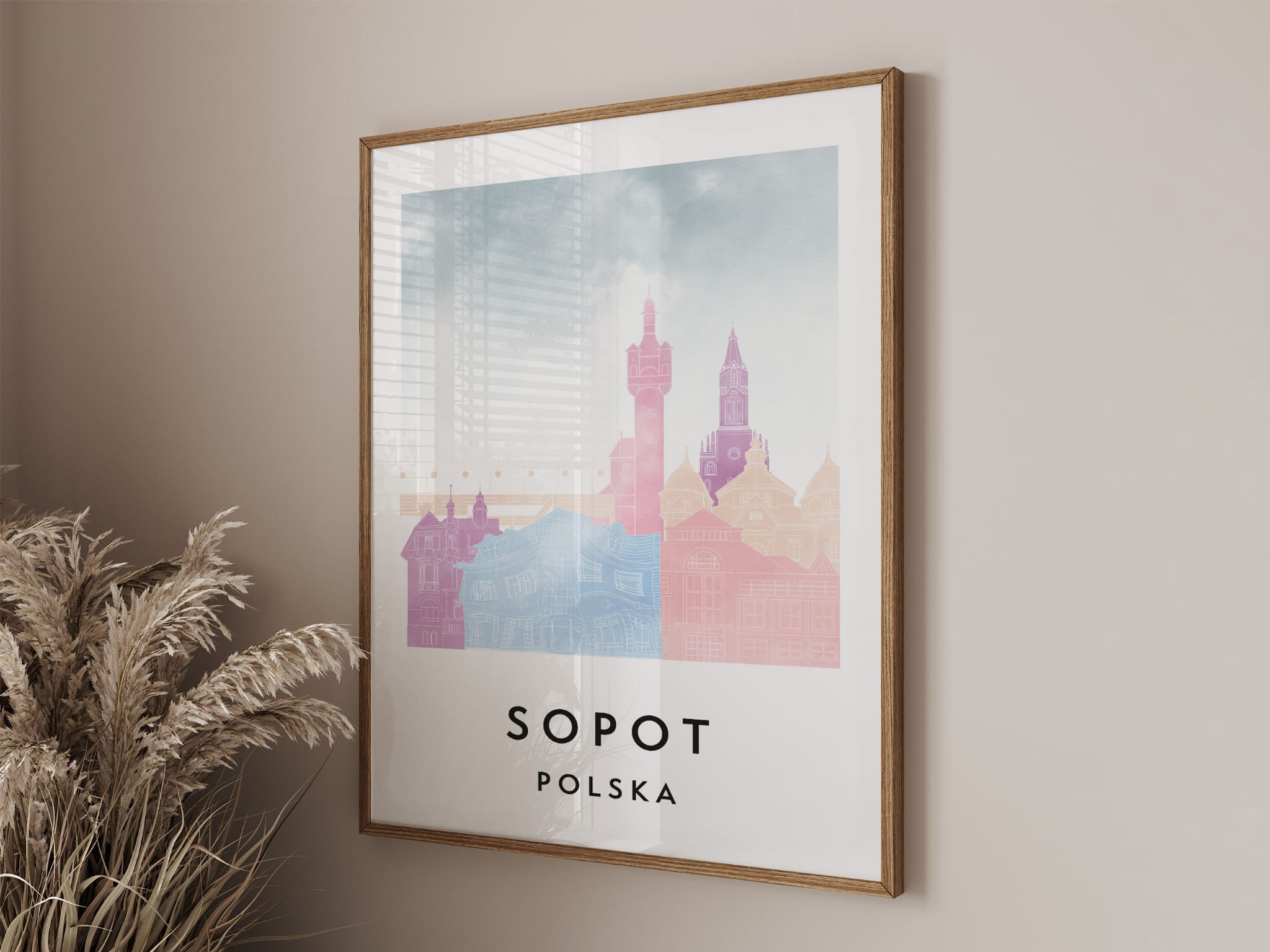 Plakat do salonu skylines Sopot stylu Watercolor/ Akwarelowym