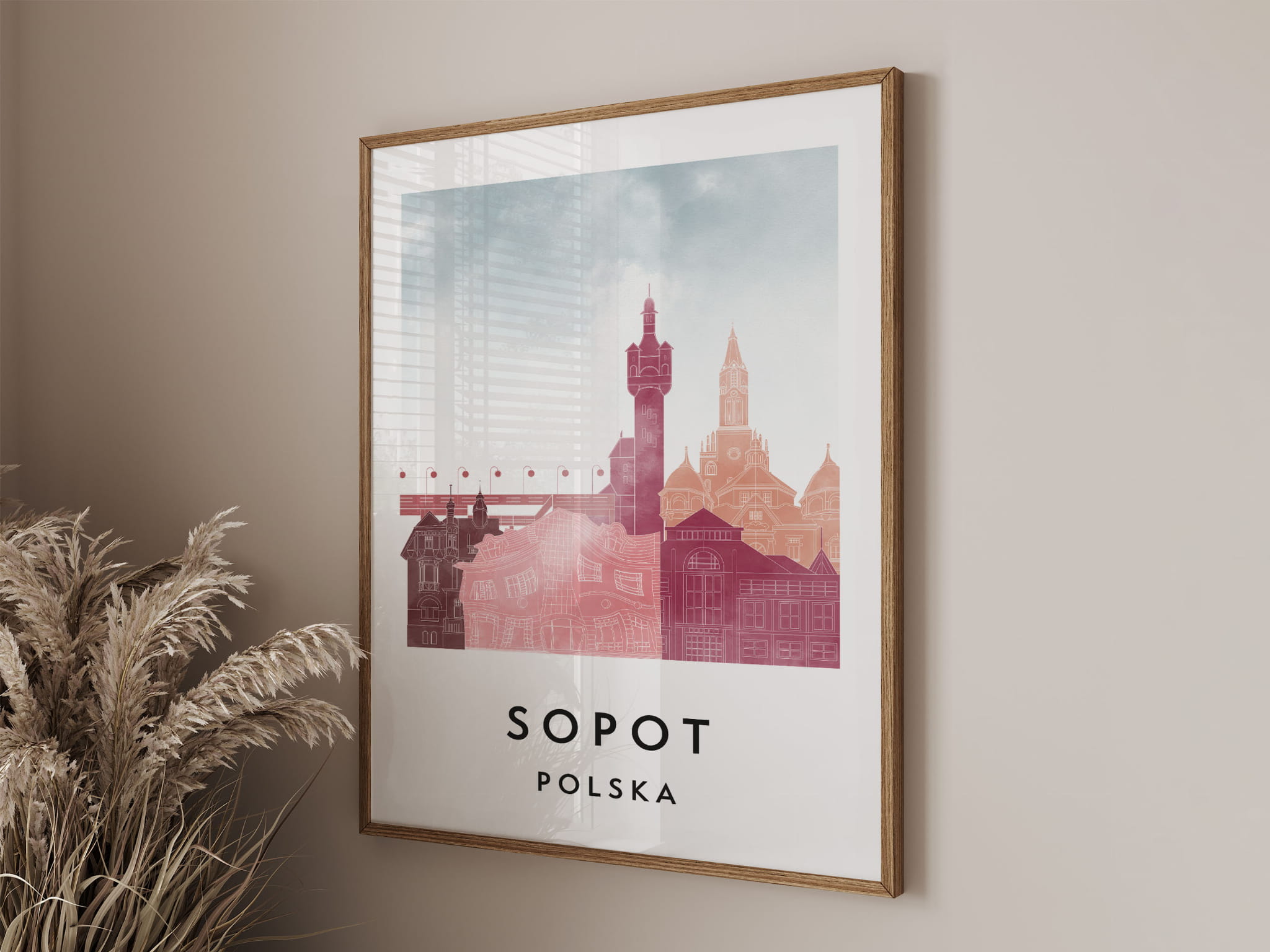 Plakat do salonu skylines Sopot stylu Watercolor/ Akwarelowym