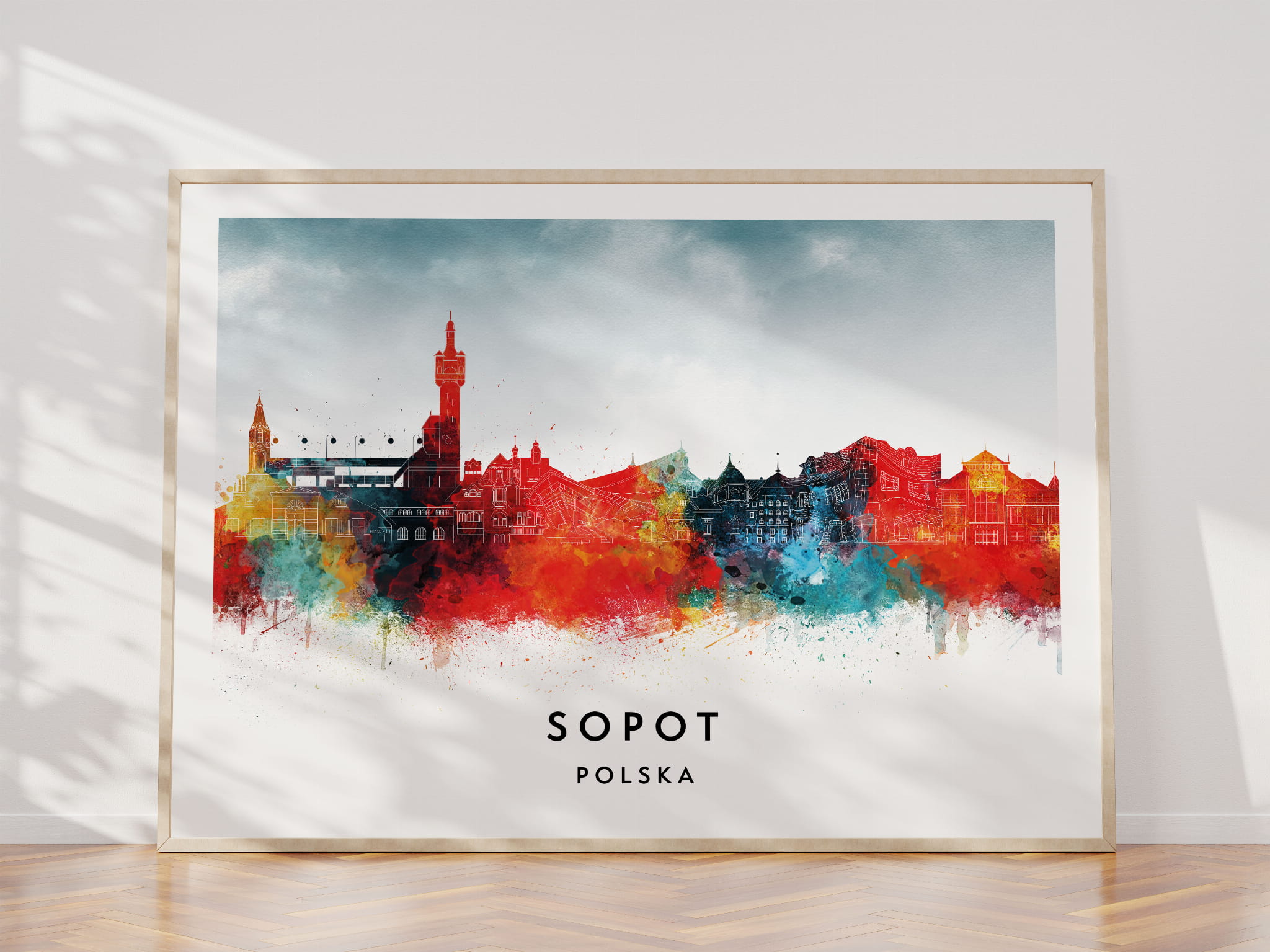 Plakat do salonu skylines Sopot w stylu Watercolor/ Akwarelowym