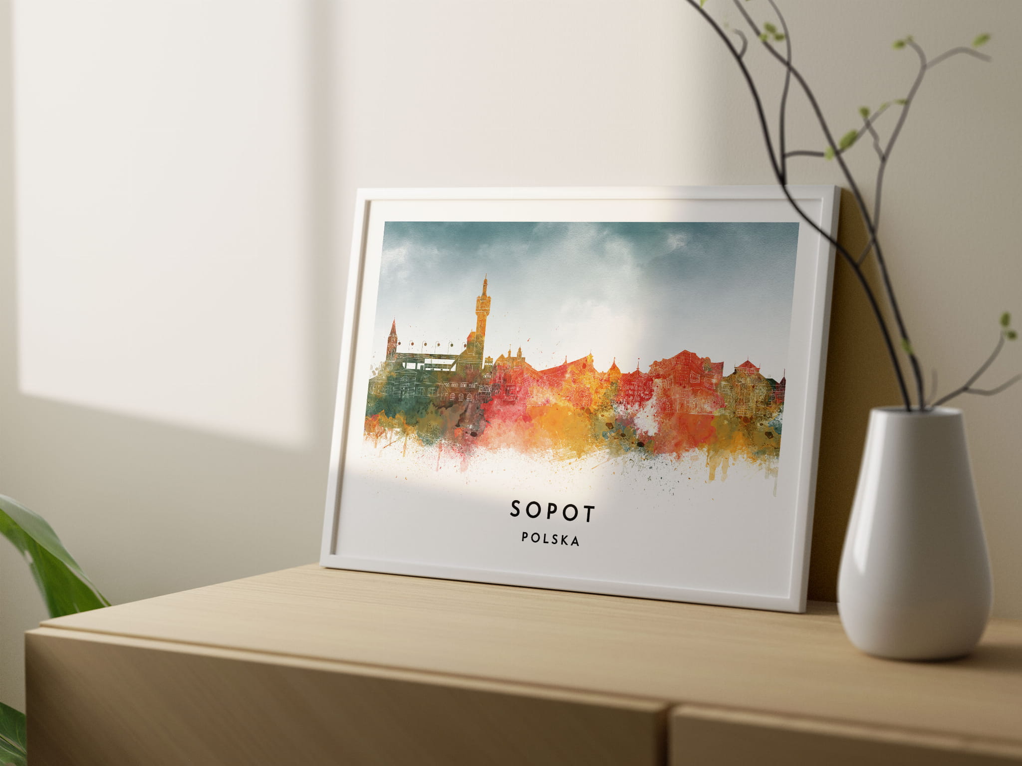 Plakat do salonu skylines Sopot w stylu Watercolor/ Akwarelowym