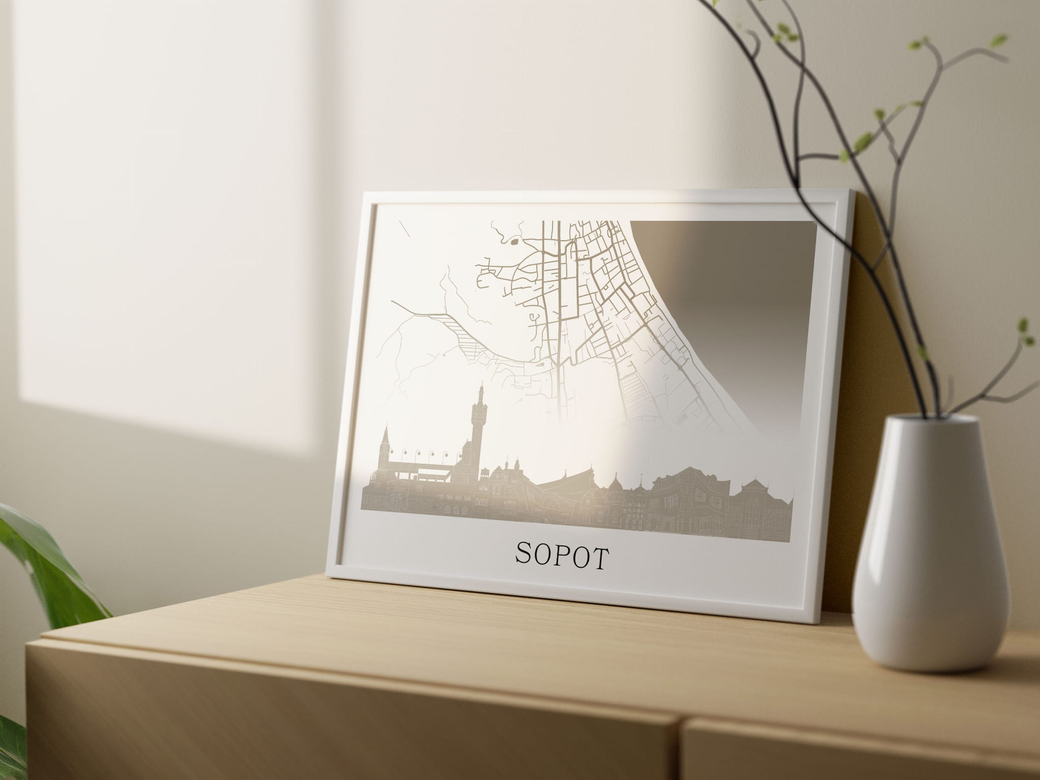 Plakat do salonu skylines Sopot z mapą