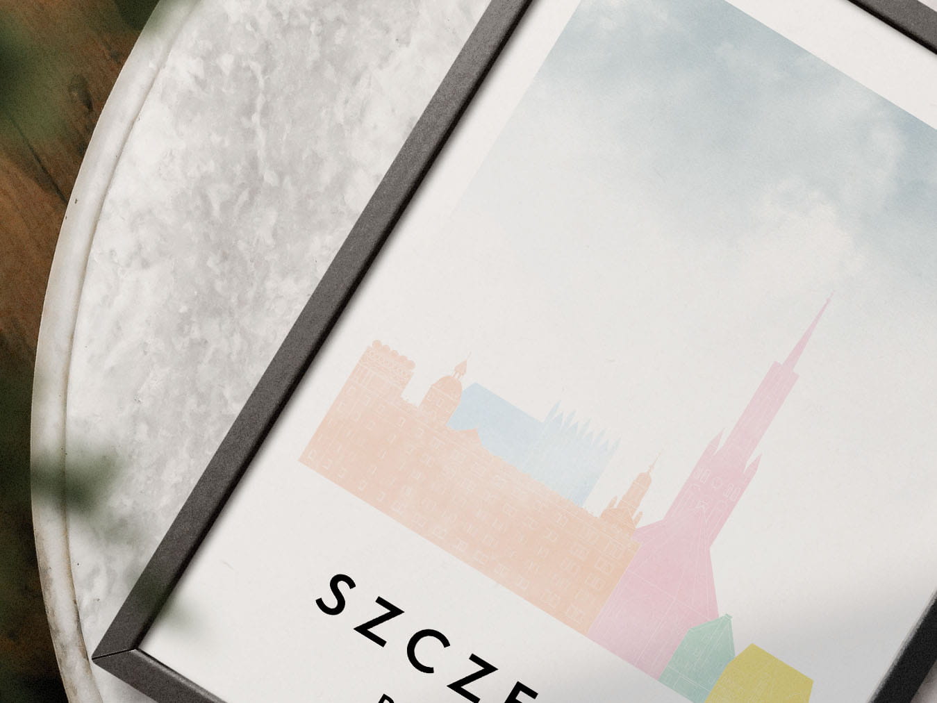 Plakat do salonu skylines Szczecin stylu Watercolor/ Akwarelowym