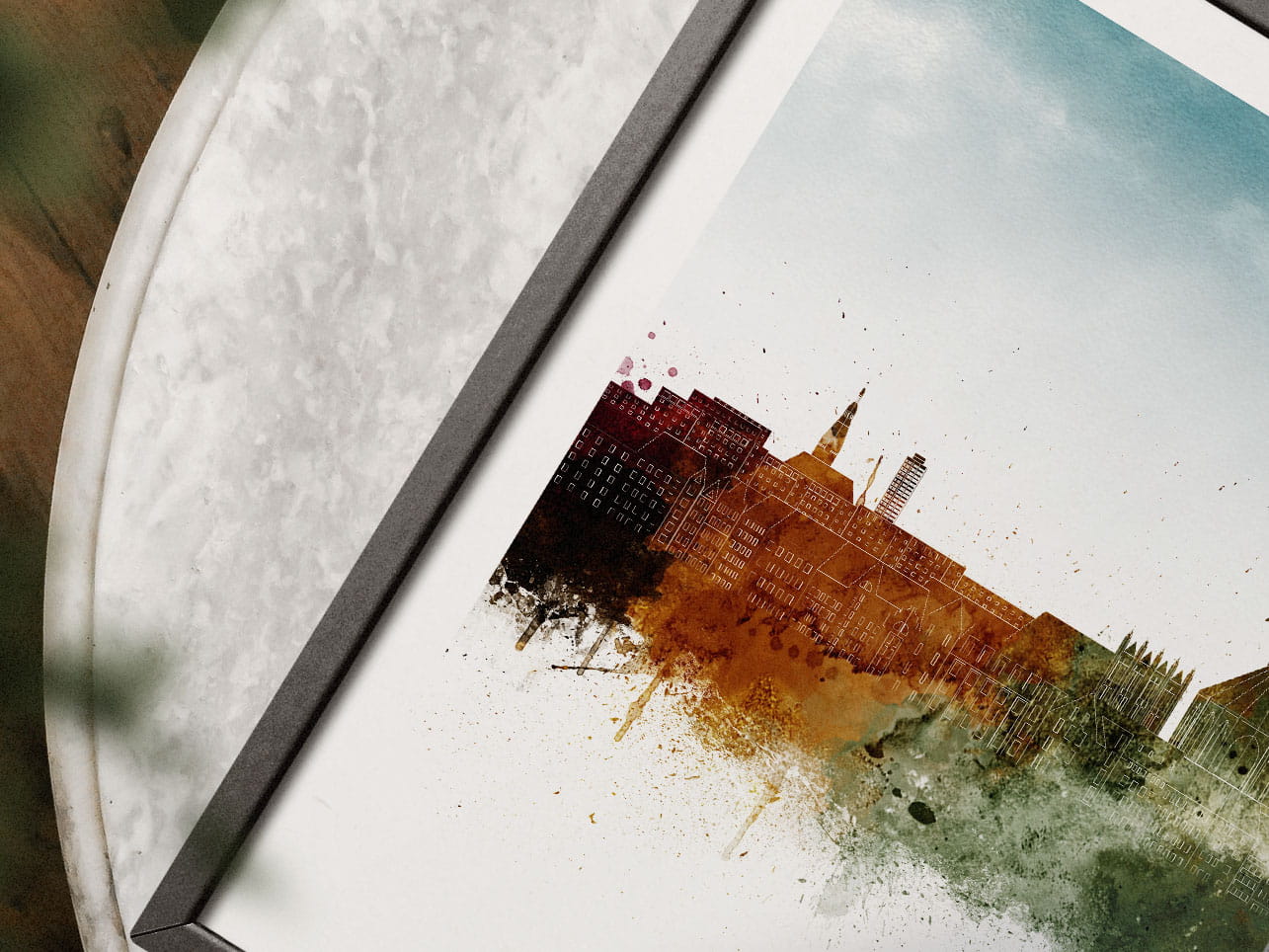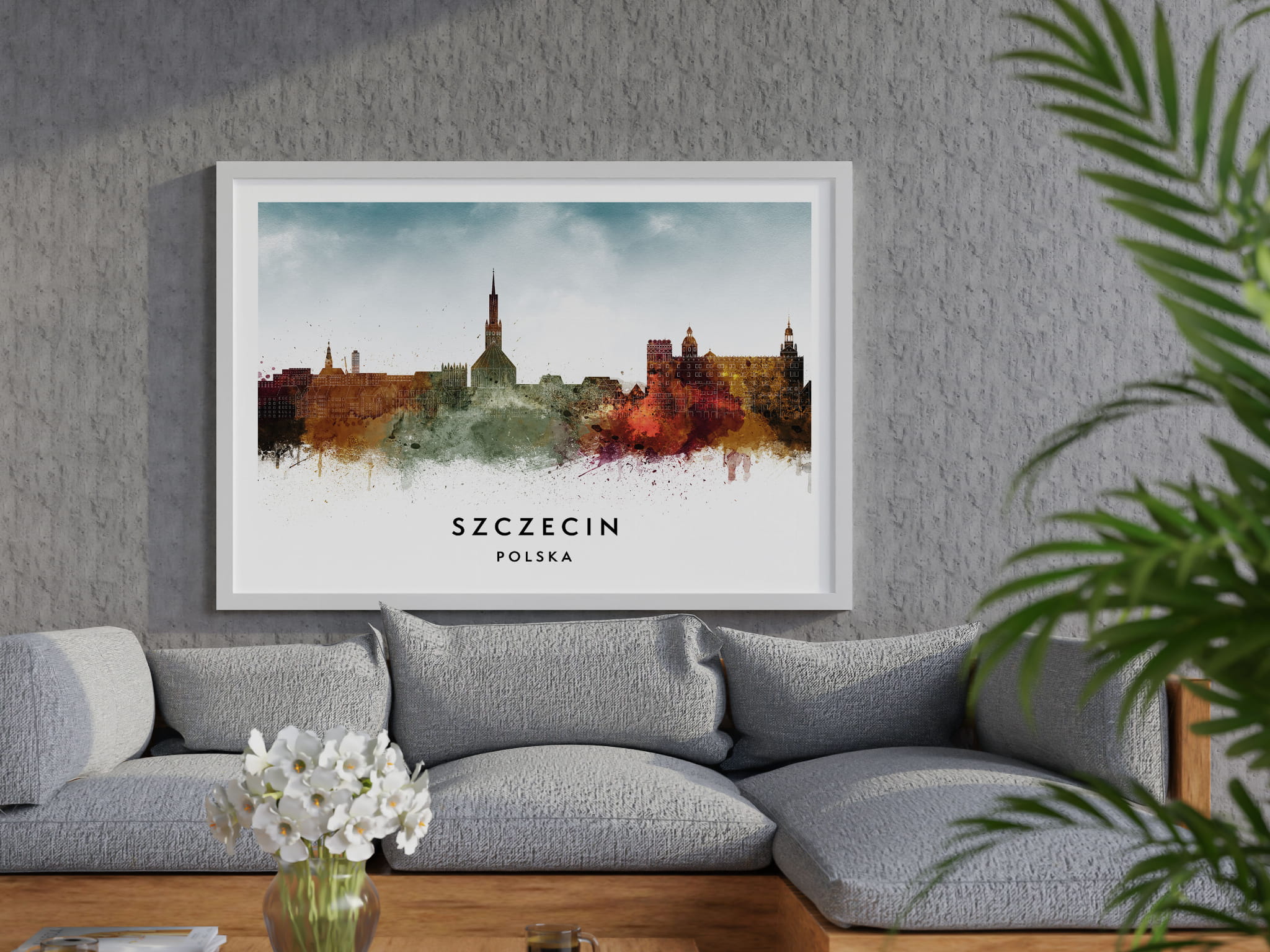 Plakat do salonu skylines Szczecin w stylu Watercolor/ Akwarelowym