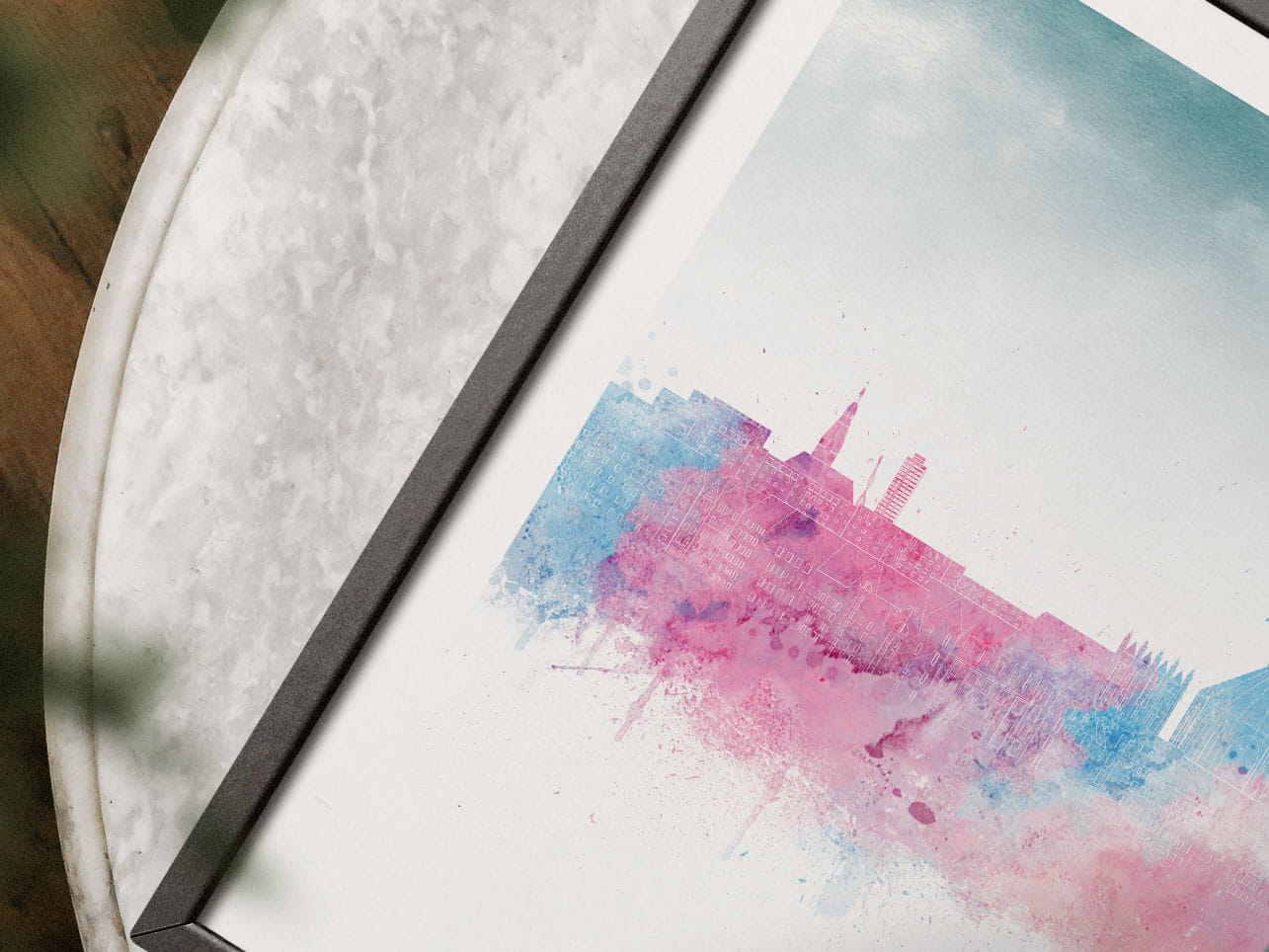 Plakat do salonu skylines Szczecin w stylu Watercolor/ Akwarelowym