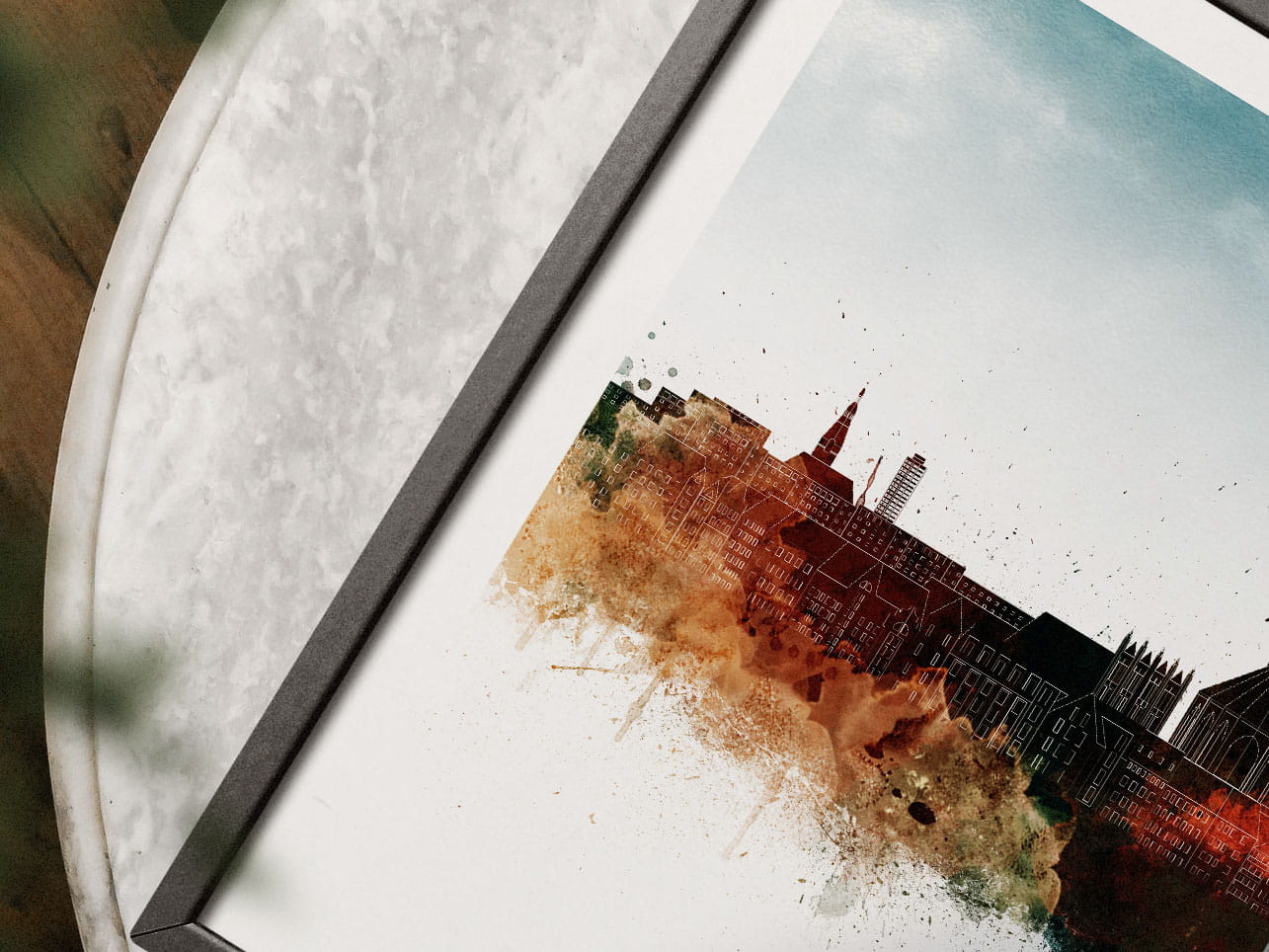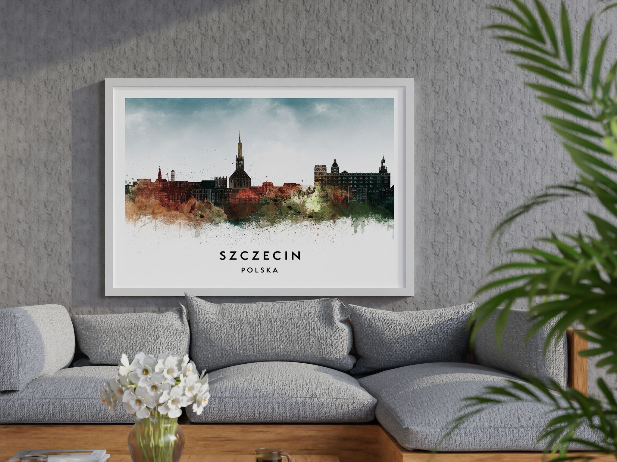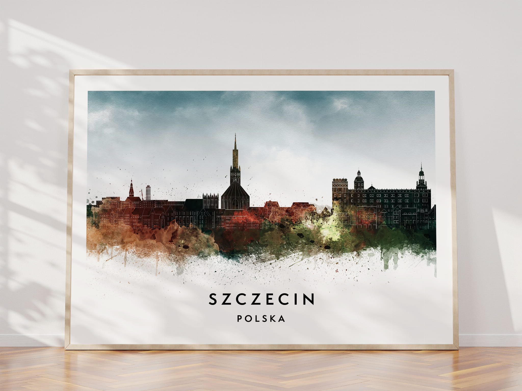 Plakat do salonu skylines Szczecin w stylu Watercolor/ Akwarelowym