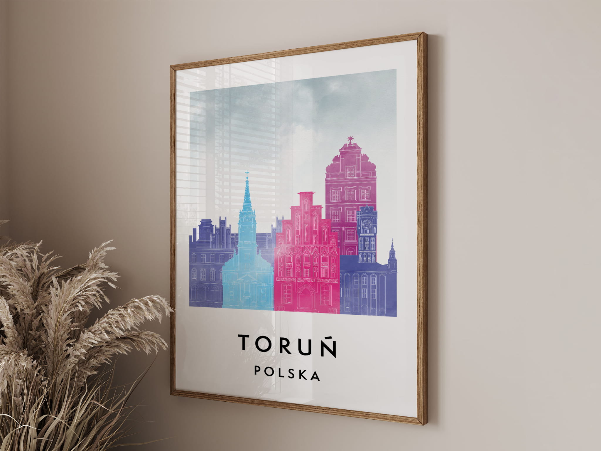 Plakat do salonu skylines Toruń stylu Watercolor/ Akwarelowym