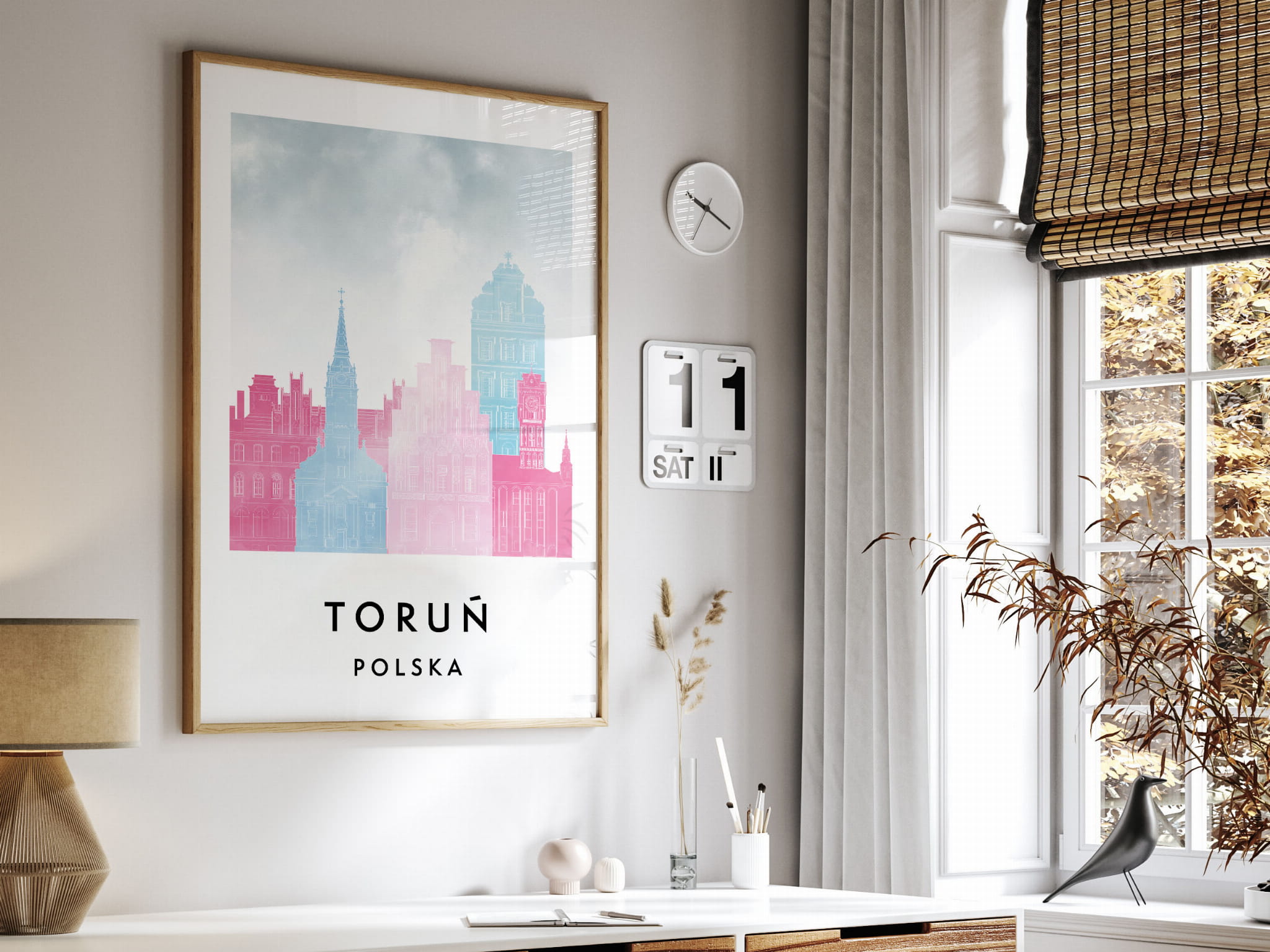 Plakat do salonu skylines Toruń stylu Watercolor/ Akwarelowym