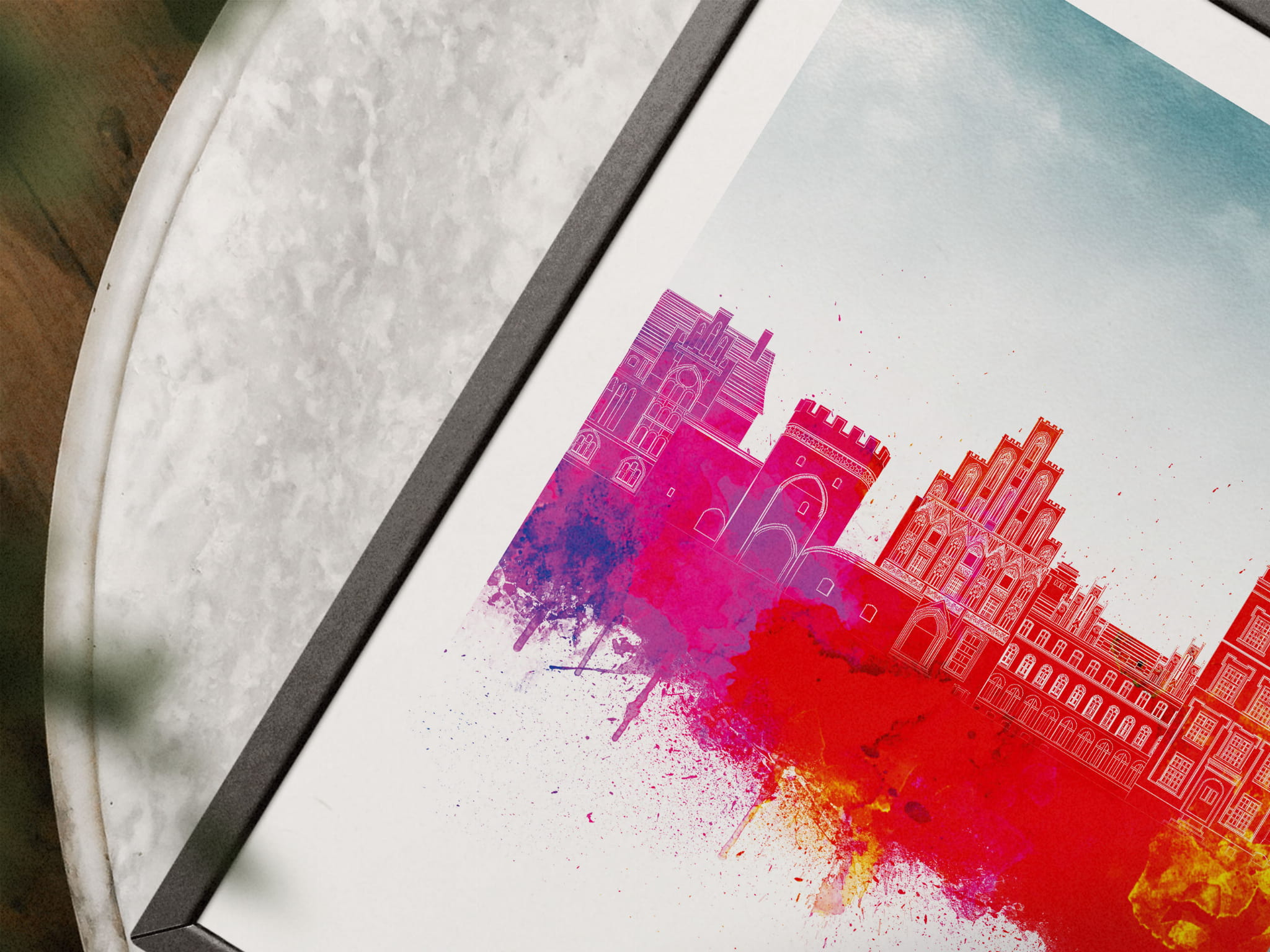 Plakat do salonu skylines Toruń w stylu Watercolor/ Akwarelowym