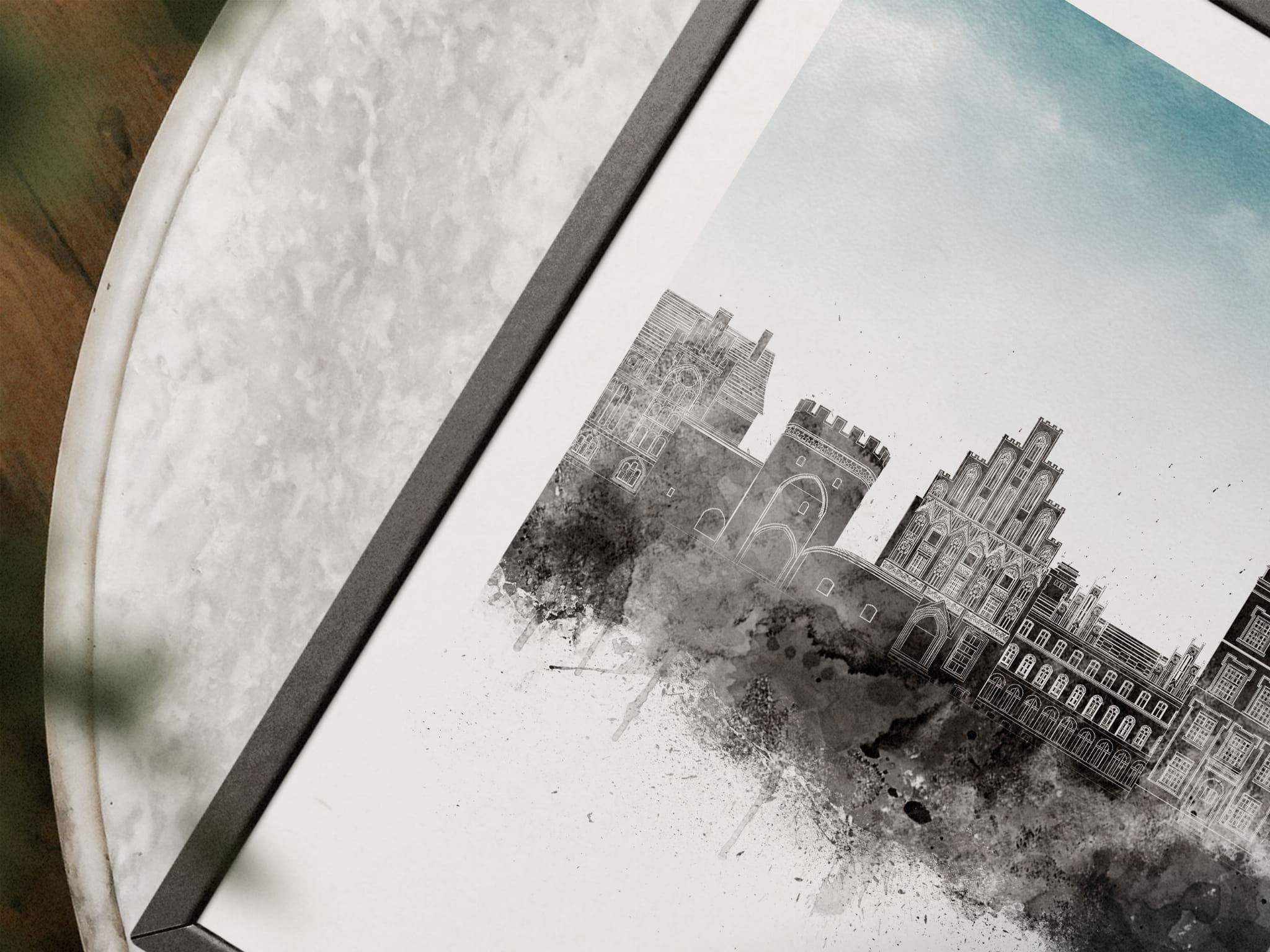 Plakat do salonu skylines Toruń w stylu Watercolor/ Akwarelowym