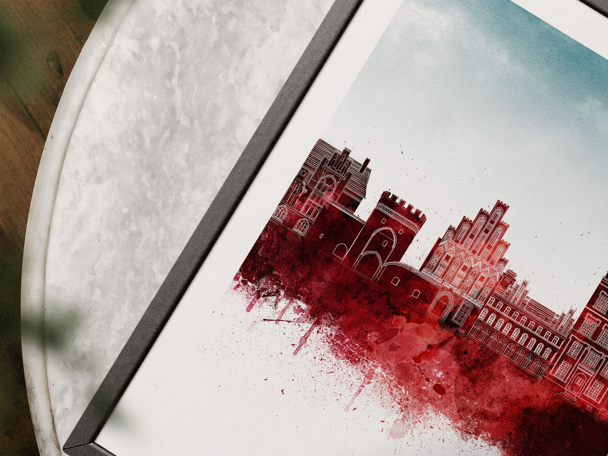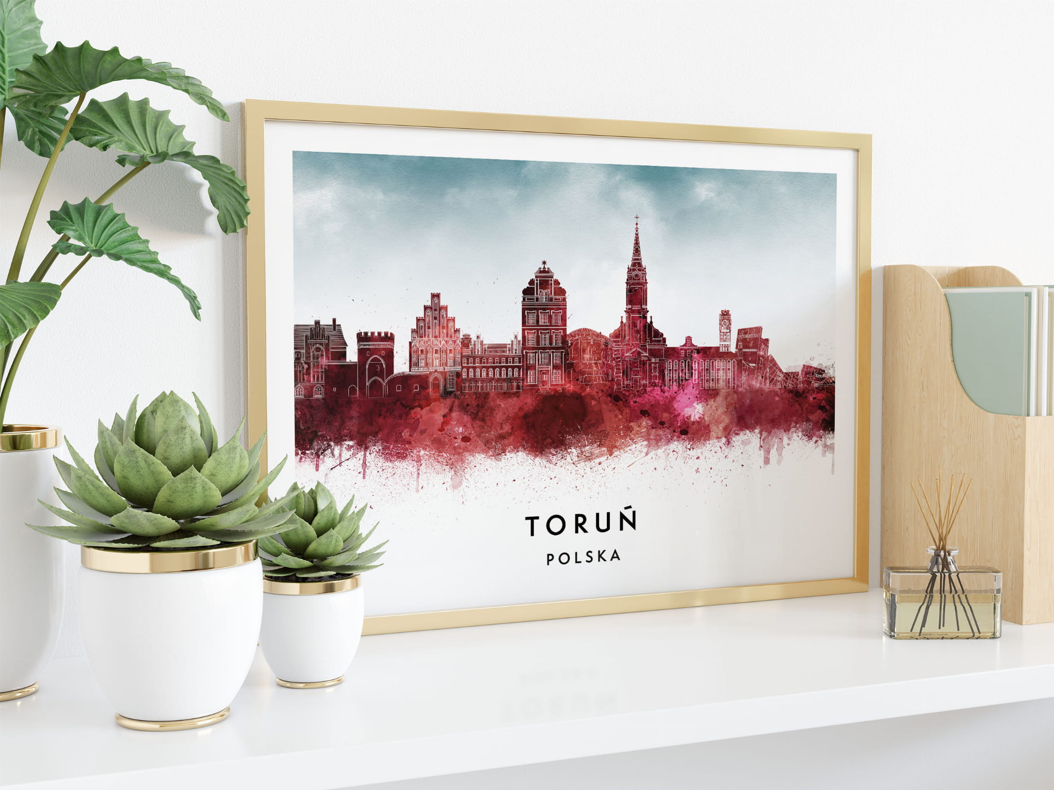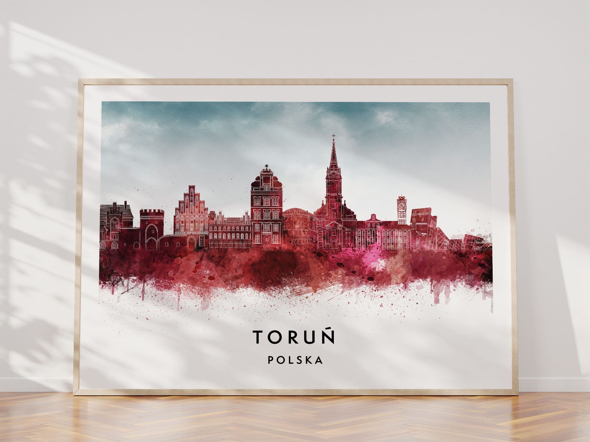 Plakat do salonu skylines Toruń w stylu Watercolor/ Akwarelowym