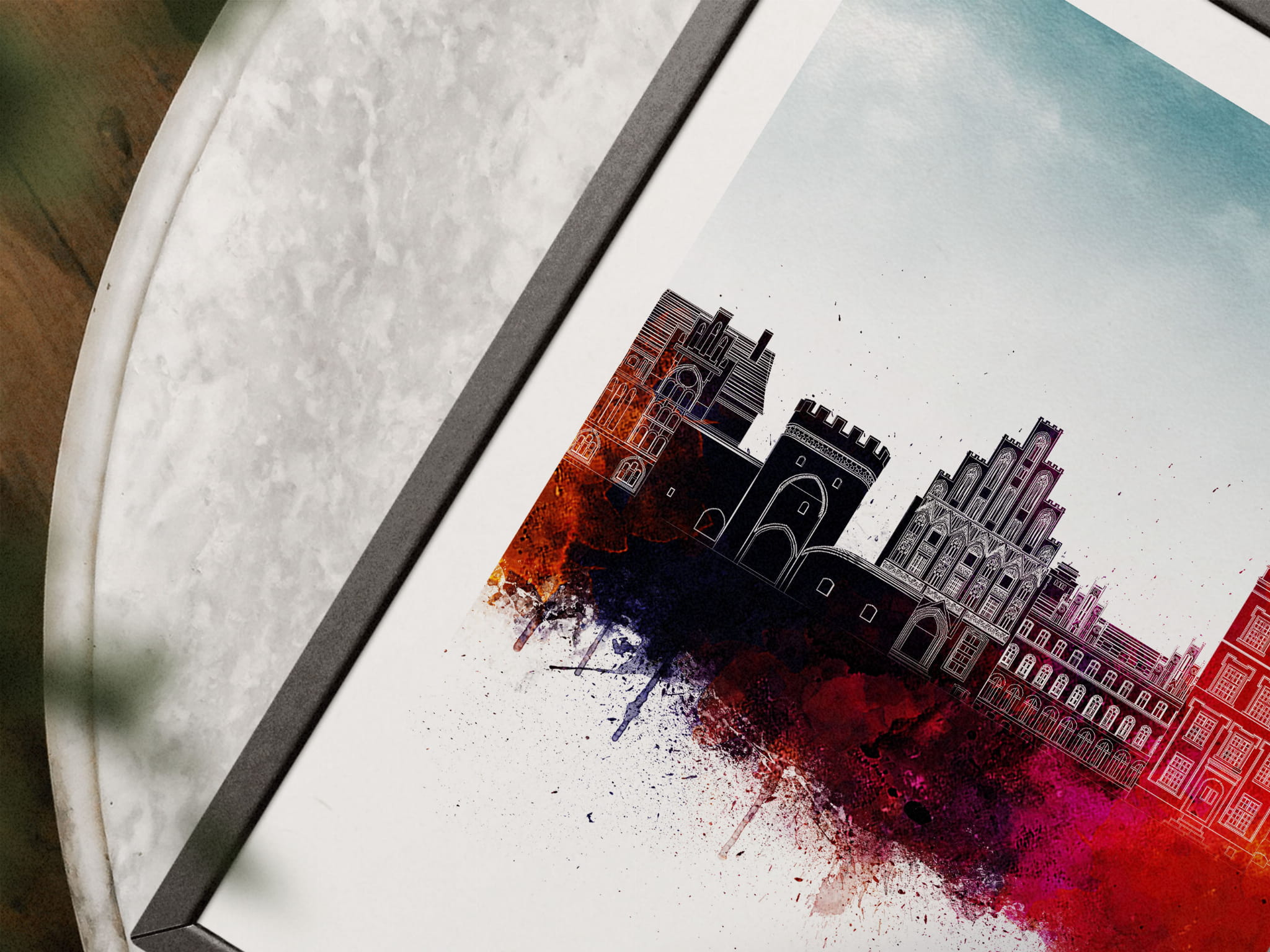 Plakat do salonu skylines Toruń w stylu Watercolor/ Akwarelowym